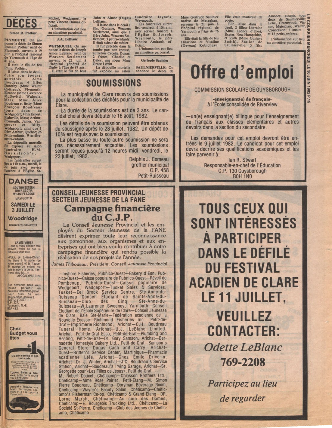 Le Courrier is Nova Scotia's leading French-language newspaper, and the only one with province-wide coverage and distribution. First published by Désiré d'Éon as Le Petit Courrier (Du Sud-Ouest de la Nouvelle-Écosse) on 10 February 1937, it has appeared weekly ever since, informing its readers, defending the interests of Acadians and francophones, and providing a bridge linking all Acadian regions in the province. It offers community news and events, extended articles, advertisements, announcements, photographs and special supplements, all directed towards supporting Nova Scotia's large, dispersed and diversified Acadian population, its businesses, industries, economy, daily activities, schools and higher education, politics, cultural life and heritage. Le Courrier offers an outstanding and unparalleled perspective on 66 years' accumulated history of Nova Scotia's Acadian population, thus enabling exploration of interests, activities, accomplishments, concerns and community issues across a broad swath of the 20th century.
