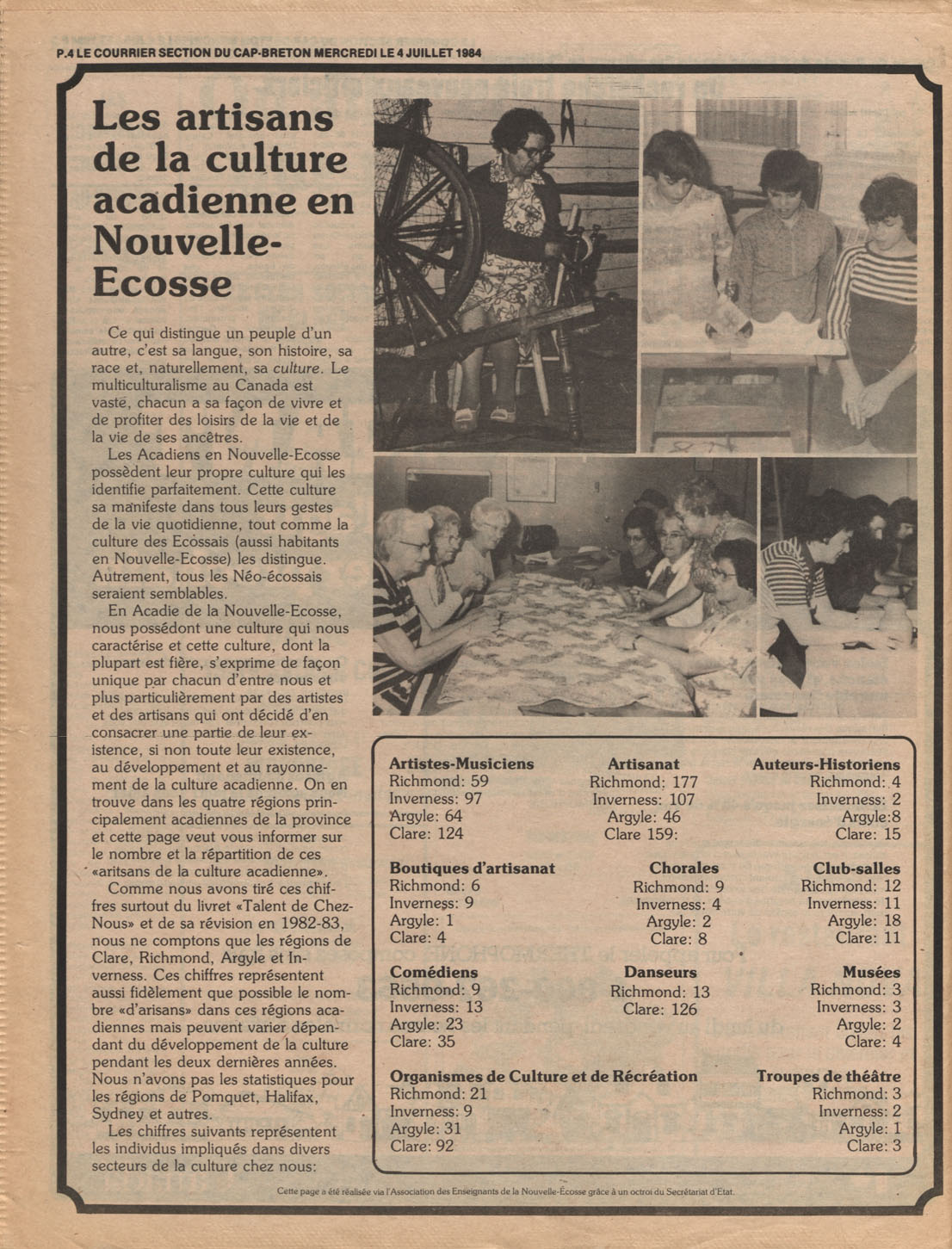 Le Courrier is Nova Scotia's leading French-language newspaper, and the only one with province-wide coverage and distribution. First published by Désiré d'Éon as Le Petit Courrier (Du Sud-Ouest de la Nouvelle-Écosse) on 10 February 1937, it has appeared weekly ever since, informing its readers, defending the interests of Acadians and francophones, and providing a bridge linking all Acadian regions in the province. It offers community news and events, extended articles, advertisements, announcements, photographs and special supplements, all directed towards supporting Nova Scotia's large, dispersed and diversified Acadian population, its businesses, industries, economy, daily activities, schools and higher education, politics, cultural life and heritage. Le Courrier offers an outstanding and unparalleled perspective on 66 years' accumulated history of Nova Scotia's Acadian population, thus enabling exploration of interests, activities, accomplishments, concerns and community issues across a broad swath of the 20th century.
