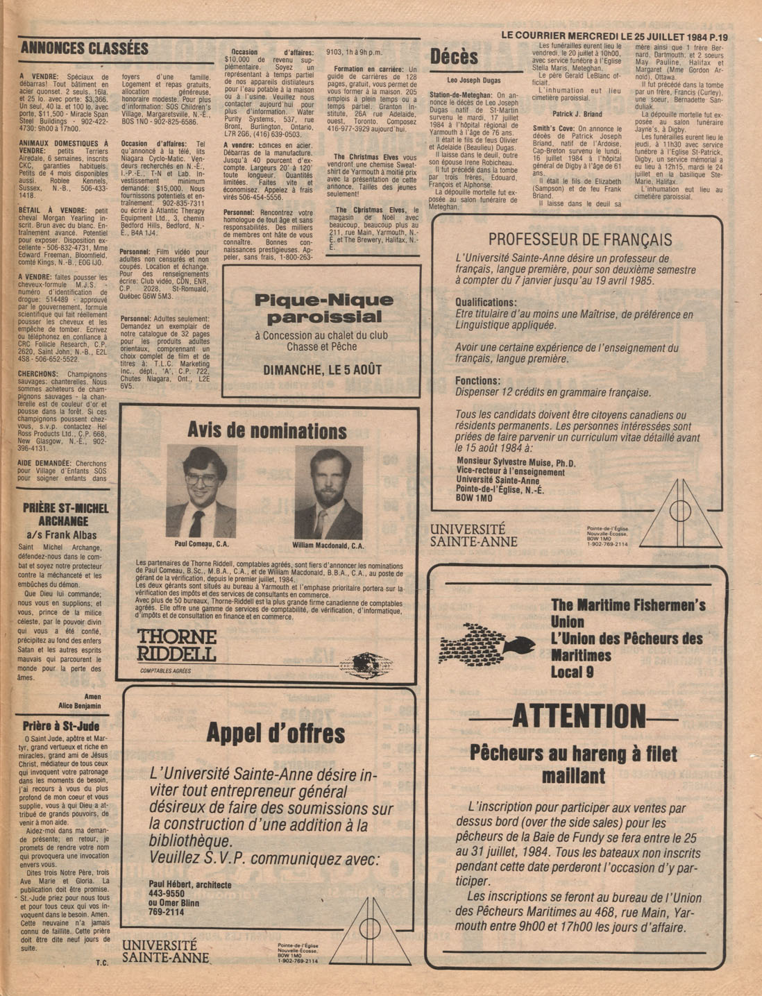 Le Courrier is Nova Scotia's leading French-language newspaper, and the only one with province-wide coverage and distribution. First published by Désiré d'Éon as Le Petit Courrier (Du Sud-Ouest de la Nouvelle-Écosse) on 10 February 1937, it has appeared weekly ever since, informing its readers, defending the interests of Acadians and francophones, and providing a bridge linking all Acadian regions in the province. It offers community news and events, extended articles, advertisements, announcements, photographs and special supplements, all directed towards supporting Nova Scotia's large, dispersed and diversified Acadian population, its businesses, industries, economy, daily activities, schools and higher education, politics, cultural life and heritage. Le Courrier offers an outstanding and unparalleled perspective on 66 years' accumulated history of Nova Scotia's Acadian population, thus enabling exploration of interests, activities, accomplishments, concerns and community issues across a broad swath of the 20th century.