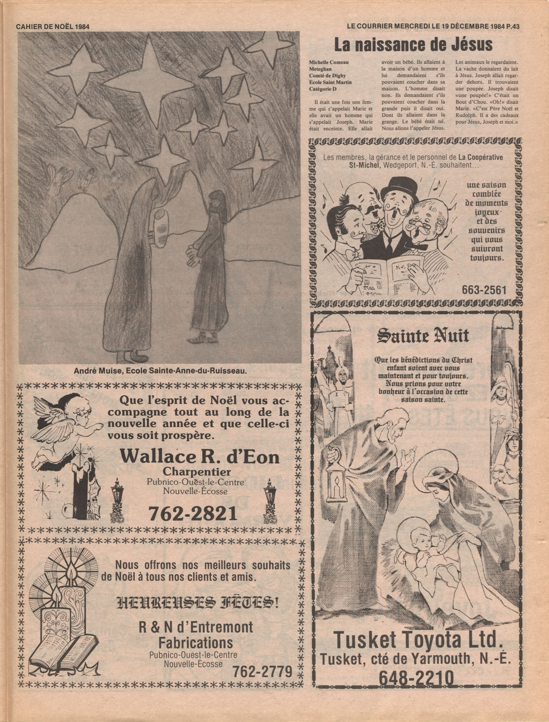 Le Courrier is Nova Scotia's leading French-language newspaper, and the only one with province-wide coverage and distribution. First published by Désiré d'Éon as Le Petit Courrier (Du Sud-Ouest de la Nouvelle-Écosse) on 10 February 1937, it has appeared weekly ever since, informing its readers, defending the interests of Acadians and francophones, and providing a bridge linking all Acadian regions in the province. It offers community news and events, extended articles, advertisements, announcements, photographs and special supplements, all directed towards supporting Nova Scotia's large, dispersed and diversified Acadian population, its businesses, industries, economy, daily activities, schools and higher education, politics, cultural life and heritage. Le Courrier offers an outstanding and unparalleled perspective on 66 years' accumulated history of Nova Scotia's Acadian population, thus enabling exploration of interests, activities, accomplishments, concerns and community issues across a broad swath of the 20th century.
