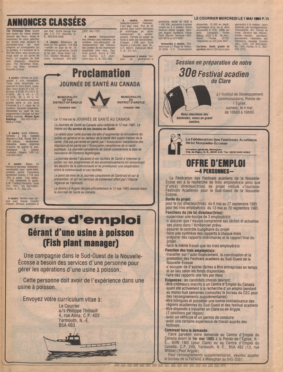 Le Courrier is Nova Scotia's leading French-language newspaper, and the only one with province-wide coverage and distribution. First published by Désiré d'Éon as Le Petit Courrier (Du Sud-Ouest de la Nouvelle-Écosse) on 10 February 1937, it has appeared weekly ever since, informing its readers, defending the interests of Acadians and francophones, and providing a bridge linking all Acadian regions in the province. It offers community news and events, extended articles, advertisements, announcements, photographs and special supplements, all directed towards supporting Nova Scotia's large, dispersed and diversified Acadian population, its businesses, industries, economy, daily activities, schools and higher education, politics, cultural life and heritage. Le Courrier offers an outstanding and unparalleled perspective on 66 years' accumulated history of Nova Scotia's Acadian population, thus enabling exploration of interests, activities, accomplishments, concerns and community issues across a broad swath of the 20th century.