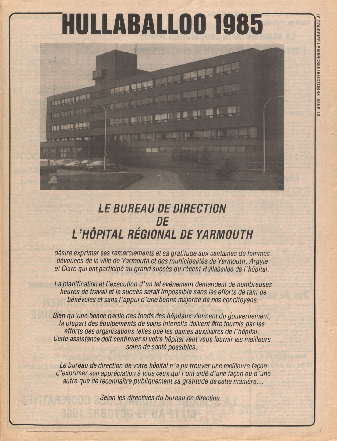 Le Courrier is Nova Scotia's leading French-language newspaper, and the only one with province-wide coverage and distribution. First published by Désiré d'Éon as Le Petit Courrier (Du Sud-Ouest de la Nouvelle-Écosse) on 10 February 1937, it has appeared weekly ever since, informing its readers, defending the interests of Acadians and francophones, and providing a bridge linking all Acadian regions in the province. It offers community news and events, extended articles, advertisements, announcements, photographs and special supplements, all directed towards supporting Nova Scotia's large, dispersed and diversified Acadian population, its businesses, industries, economy, daily activities, schools and higher education, politics, cultural life and heritage. Le Courrier offers an outstanding and unparalleled perspective on 66 years' accumulated history of Nova Scotia's Acadian population, thus enabling exploration of interests, activities, accomplishments, concerns and community issues across a broad swath of the 20th century.