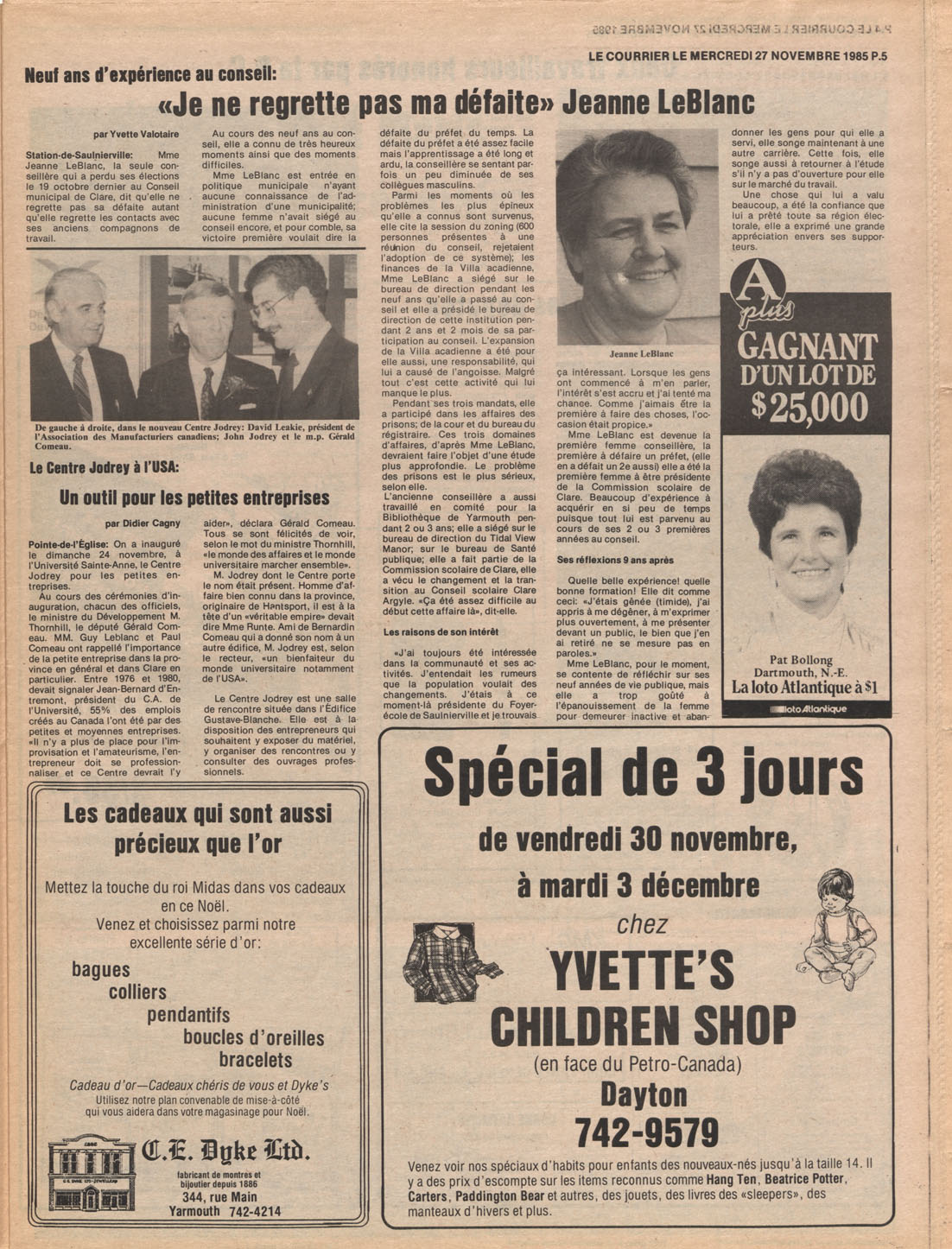 Le Courrier is Nova Scotia's leading French-language newspaper, and the only one with province-wide coverage and distribution. First published by Désiré d'Éon as Le Petit Courrier (Du Sud-Ouest de la Nouvelle-Écosse) on 10 February 1937, it has appeared weekly ever since, informing its readers, defending the interests of Acadians and francophones, and providing a bridge linking all Acadian regions in the province. It offers community news and events, extended articles, advertisements, announcements, photographs and special supplements, all directed towards supporting Nova Scotia's large, dispersed and diversified Acadian population, its businesses, industries, economy, daily activities, schools and higher education, politics, cultural life and heritage. Le Courrier offers an outstanding and unparalleled perspective on 66 years' accumulated history of Nova Scotia's Acadian population, thus enabling exploration of interests, activities, accomplishments, concerns and community issues across a broad swath of the 20th century.