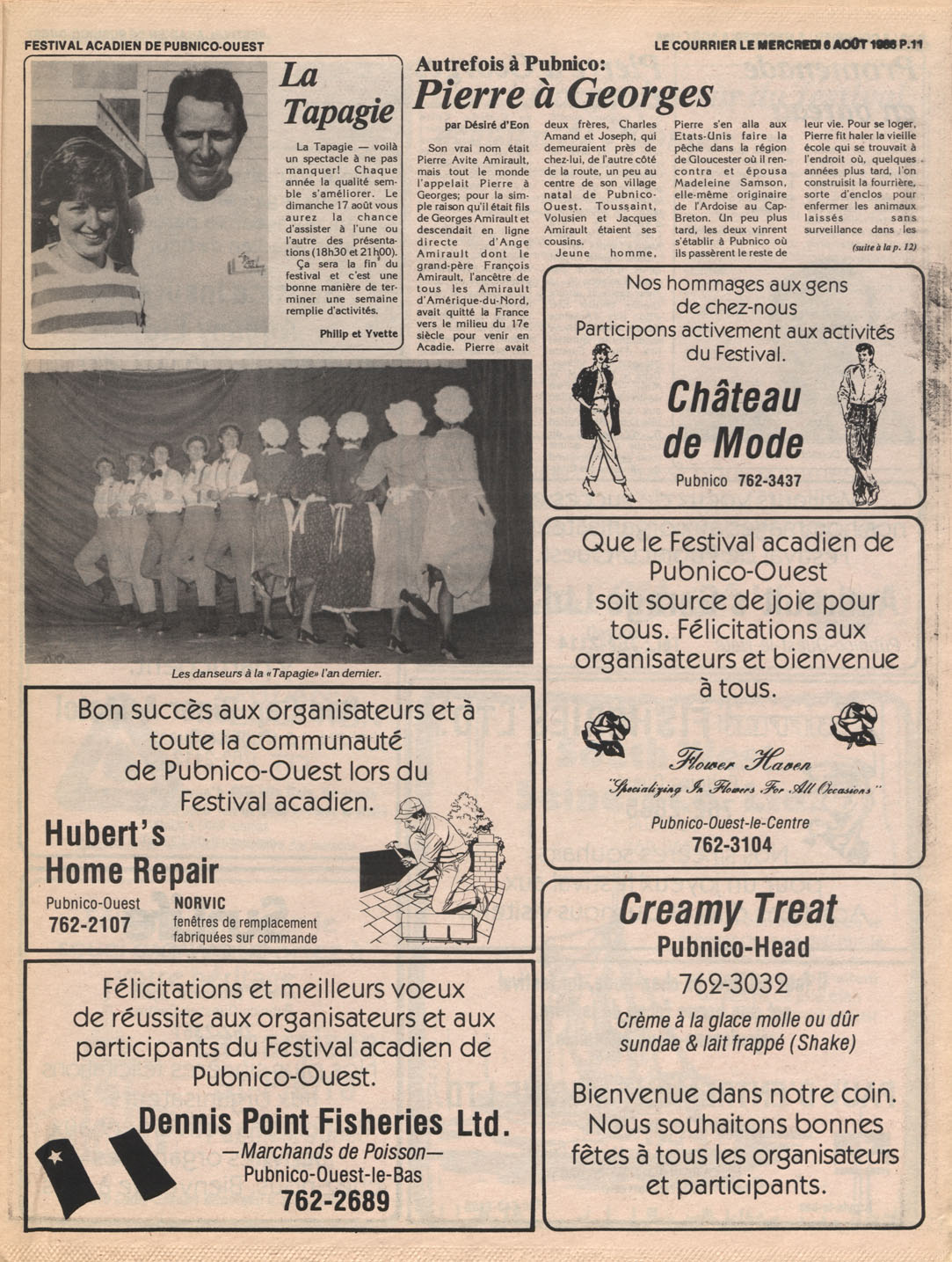 Le Courrier is Nova Scotia's leading French-language newspaper, and the only one with province-wide coverage and distribution. First published by Désiré d'Éon as Le Petit Courrier (Du Sud-Ouest de la Nouvelle-Écosse) on 10 February 1937, it has appeared weekly ever since, informing its readers, defending the interests of Acadians and francophones, and providing a bridge linking all Acadian regions in the province. It offers community news and events, extended articles, advertisements, announcements, photographs and special supplements, all directed towards supporting Nova Scotia's large, dispersed and diversified Acadian population, its businesses, industries, economy, daily activities, schools and higher education, politics, cultural life and heritage. Le Courrier offers an outstanding and unparalleled perspective on 66 years' accumulated history of Nova Scotia's Acadian population, thus enabling exploration of interests, activities, accomplishments, concerns and community issues across a broad swath of the 20th century.