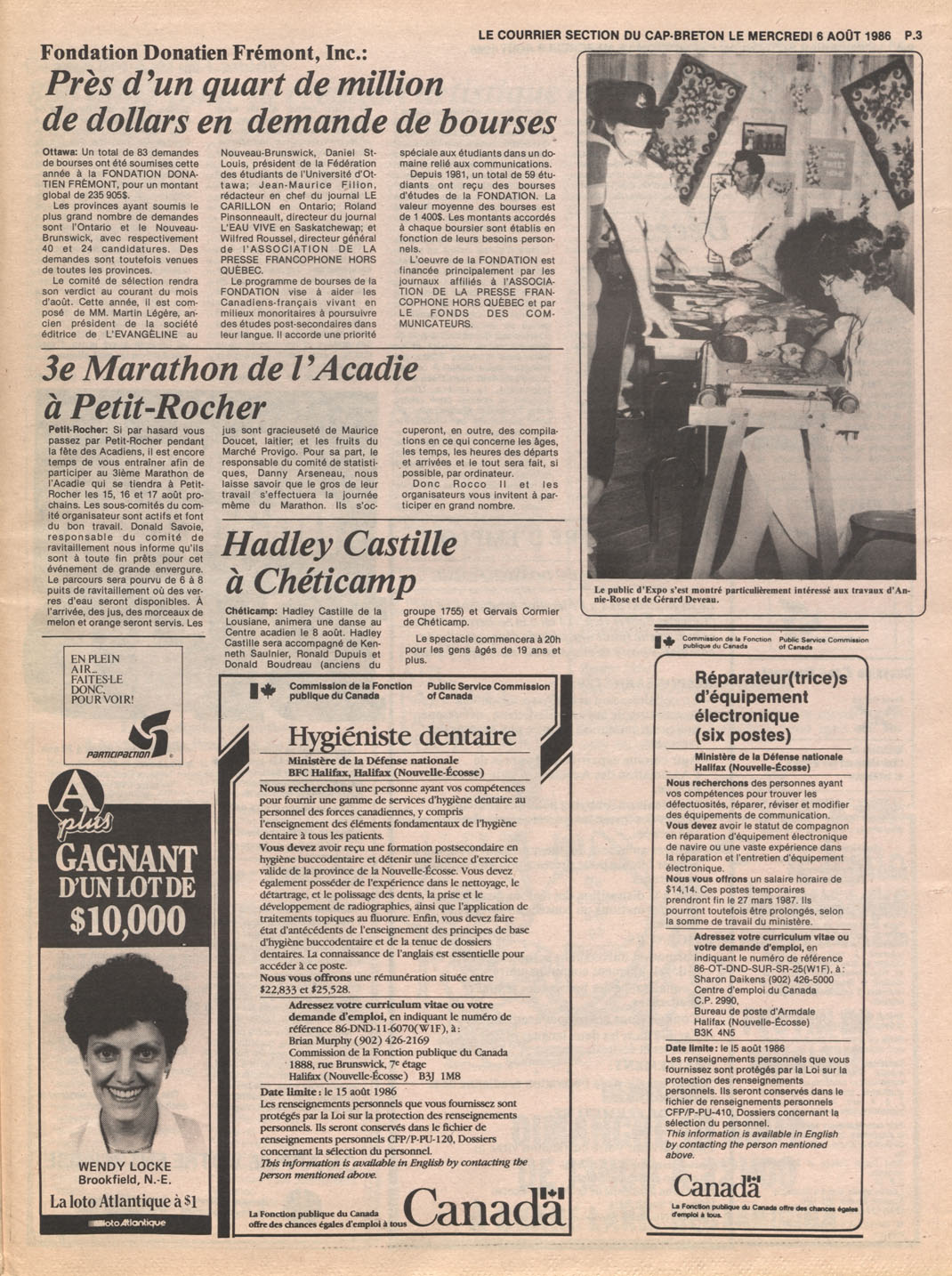 Le Courrier is Nova Scotia's leading French-language newspaper, and the only one with province-wide coverage and distribution. First published by Désiré d'Éon as Le Petit Courrier (Du Sud-Ouest de la Nouvelle-Écosse) on 10 February 1937, it has appeared weekly ever since, informing its readers, defending the interests of Acadians and francophones, and providing a bridge linking all Acadian regions in the province. It offers community news and events, extended articles, advertisements, announcements, photographs and special supplements, all directed towards supporting Nova Scotia's large, dispersed and diversified Acadian population, its businesses, industries, economy, daily activities, schools and higher education, politics, cultural life and heritage. Le Courrier offers an outstanding and unparalleled perspective on 66 years' accumulated history of Nova Scotia's Acadian population, thus enabling exploration of interests, activities, accomplishments, concerns and community issues across a broad swath of the 20th century.