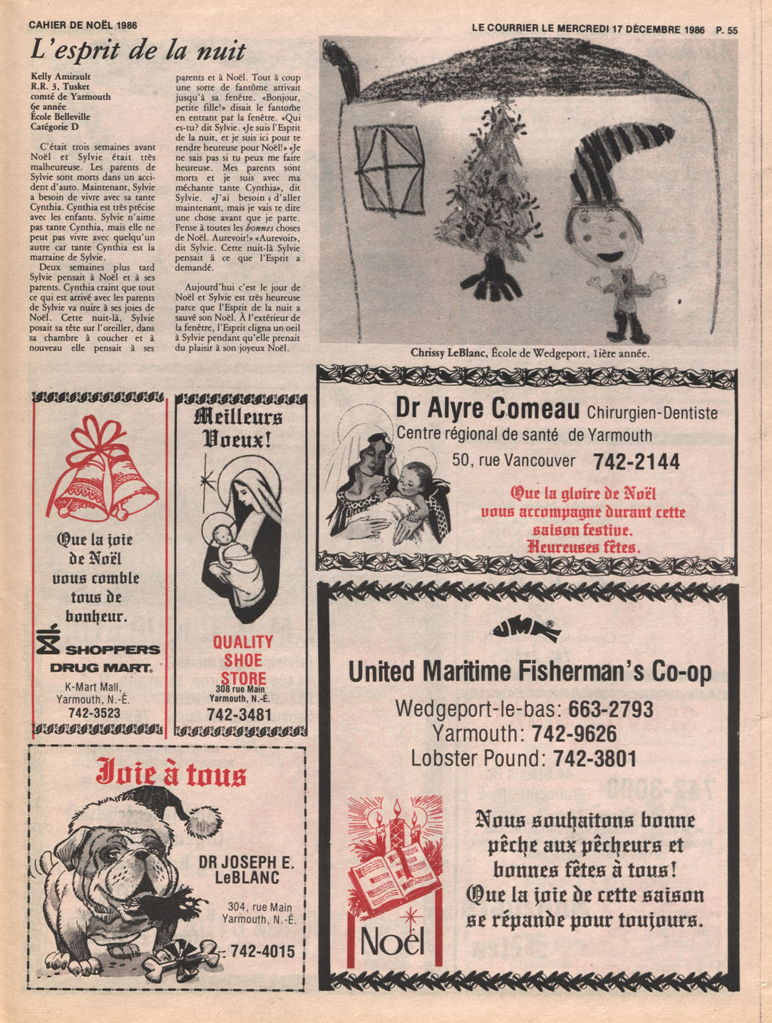 Le Courrier is Nova Scotia's leading French-language newspaper, and the only one with province-wide coverage and distribution. First published by Désiré d'Éon as Le Petit Courrier (Du Sud-Ouest de la Nouvelle-Écosse) on 10 February 1937, it has appeared weekly ever since, informing its readers, defending the interests of Acadians and francophones, and providing a bridge linking all Acadian regions in the province. It offers community news and events, extended articles, advertisements, announcements, photographs and special supplements, all directed towards supporting Nova Scotia's large, dispersed and diversified Acadian population, its businesses, industries, economy, daily activities, schools and higher education, politics, cultural life and heritage. Le Courrier offers an outstanding and unparalleled perspective on 66 years' accumulated history of Nova Scotia's Acadian population, thus enabling exploration of interests, activities, accomplishments, concerns and community issues across a broad swath of the 20th century.