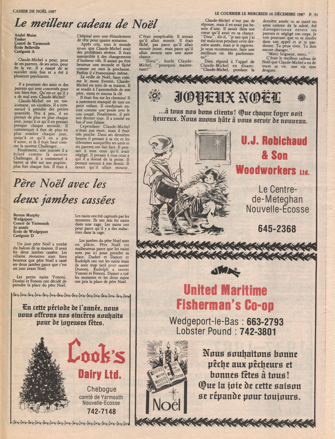 Le Courrier is Nova Scotia's leading French-language newspaper, and the only one with province-wide coverage and distribution. First published by Désiré d'Éon as Le Petit Courrier (Du Sud-Ouest de la Nouvelle-Écosse) on 10 February 1937, it has appeared weekly ever since, informing its readers, defending the interests of Acadians and francophones, and providing a bridge linking all Acadian regions in the province. It offers community news and events, extended articles, advertisements, announcements, photographs and special supplements, all directed towards supporting Nova Scotia's large, dispersed and diversified Acadian population, its businesses, industries, economy, daily activities, schools and higher education, politics, cultural life and heritage. Le Courrier offers an outstanding and unparalleled perspective on 66 years' accumulated history of Nova Scotia's Acadian population, thus enabling exploration of interests, activities, accomplishments, concerns and community issues across a broad swath of the 20th century.