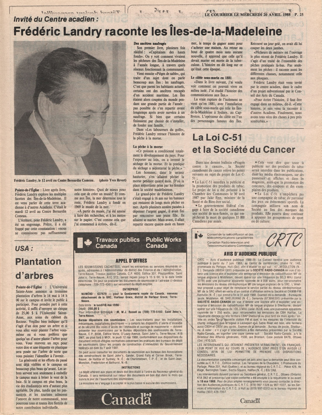 Le Courrier is Nova Scotia's leading French-language newspaper, and the only one with province-wide coverage and distribution. First published by Désiré d'Éon as Le Petit Courrier (Du Sud-Ouest de la Nouvelle-Écosse) on 10 February 1937, it has appeared weekly ever since, informing its readers, defending the interests of Acadians and francophones, and providing a bridge linking all Acadian regions in the province. It offers community news and events, extended articles, advertisements, announcements, photographs and special supplements, all directed towards supporting Nova Scotia's large, dispersed and diversified Acadian population, its businesses, industries, economy, daily activities, schools and higher education, politics, cultural life and heritage. Le Courrier offers an outstanding and unparalleled perspective on 66 years' accumulated history of Nova Scotia's Acadian population, thus enabling exploration of interests, activities, accomplishments, concerns and community issues across a broad swath of the 20th century.
