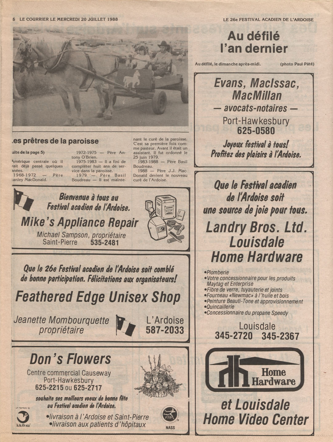 Le Courrier is Nova Scotia's leading French-language newspaper, and the only one with province-wide coverage and distribution. First published by Désiré d'Éon as Le Petit Courrier (Du Sud-Ouest de la Nouvelle-Écosse) on 10 February 1937, it has appeared weekly ever since, informing its readers, defending the interests of Acadians and francophones, and providing a bridge linking all Acadian regions in the province. It offers community news and events, extended articles, advertisements, announcements, photographs and special supplements, all directed towards supporting Nova Scotia's large, dispersed and diversified Acadian population, its businesses, industries, economy, daily activities, schools and higher education, politics, cultural life and heritage. Le Courrier offers an outstanding and unparalleled perspective on 66 years' accumulated history of Nova Scotia's Acadian population, thus enabling exploration of interests, activities, accomplishments, concerns and community issues across a broad swath of the 20th century.