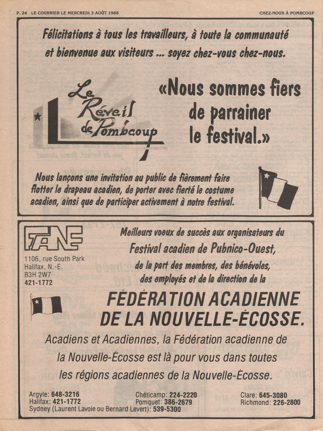 Le Courrier is Nova Scotia's leading French-language newspaper, and the only one with province-wide coverage and distribution. First published by Désiré d'Éon as Le Petit Courrier (Du Sud-Ouest de la Nouvelle-Écosse) on 10 February 1937, it has appeared weekly ever since, informing its readers, defending the interests of Acadians and francophones, and providing a bridge linking all Acadian regions in the province. It offers community news and events, extended articles, advertisements, announcements, photographs and special supplements, all directed towards supporting Nova Scotia's large, dispersed and diversified Acadian population, its businesses, industries, economy, daily activities, schools and higher education, politics, cultural life and heritage. Le Courrier offers an outstanding and unparalleled perspective on 66 years' accumulated history of Nova Scotia's Acadian population, thus enabling exploration of interests, activities, accomplishments, concerns and community issues across a broad swath of the 20th century.