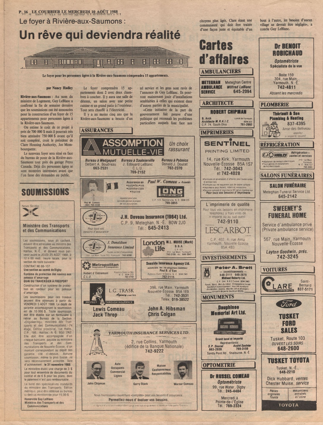 Le Courrier is Nova Scotia's leading French-language newspaper, and the only one with province-wide coverage and distribution. First published by Désiré d'Éon as Le Petit Courrier (Du Sud-Ouest de la Nouvelle-Écosse) on 10 February 1937, it has appeared weekly ever since, informing its readers, defending the interests of Acadians and francophones, and providing a bridge linking all Acadian regions in the province. It offers community news and events, extended articles, advertisements, announcements, photographs and special supplements, all directed towards supporting Nova Scotia's large, dispersed and diversified Acadian population, its businesses, industries, economy, daily activities, schools and higher education, politics, cultural life and heritage. Le Courrier offers an outstanding and unparalleled perspective on 66 years' accumulated history of Nova Scotia's Acadian population, thus enabling exploration of interests, activities, accomplishments, concerns and community issues across a broad swath of the 20th century.