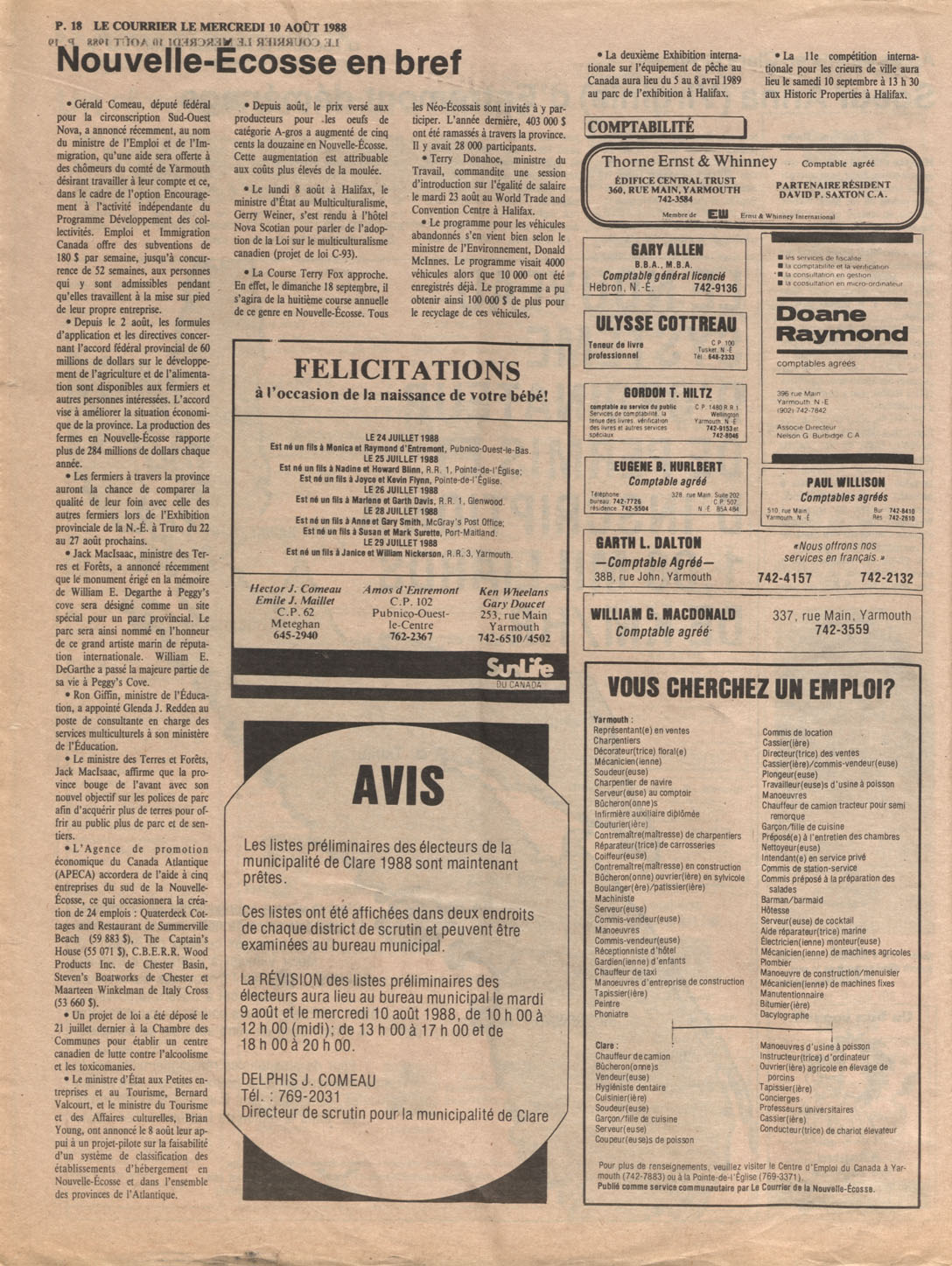 Le Courrier is Nova Scotia's leading French-language newspaper, and the only one with province-wide coverage and distribution. First published by Désiré d'Éon as Le Petit Courrier (Du Sud-Ouest de la Nouvelle-Écosse) on 10 February 1937, it has appeared weekly ever since, informing its readers, defending the interests of Acadians and francophones, and providing a bridge linking all Acadian regions in the province. It offers community news and events, extended articles, advertisements, announcements, photographs and special supplements, all directed towards supporting Nova Scotia's large, dispersed and diversified Acadian population, its businesses, industries, economy, daily activities, schools and higher education, politics, cultural life and heritage. Le Courrier offers an outstanding and unparalleled perspective on 66 years' accumulated history of Nova Scotia's Acadian population, thus enabling exploration of interests, activities, accomplishments, concerns and community issues across a broad swath of the 20th century.