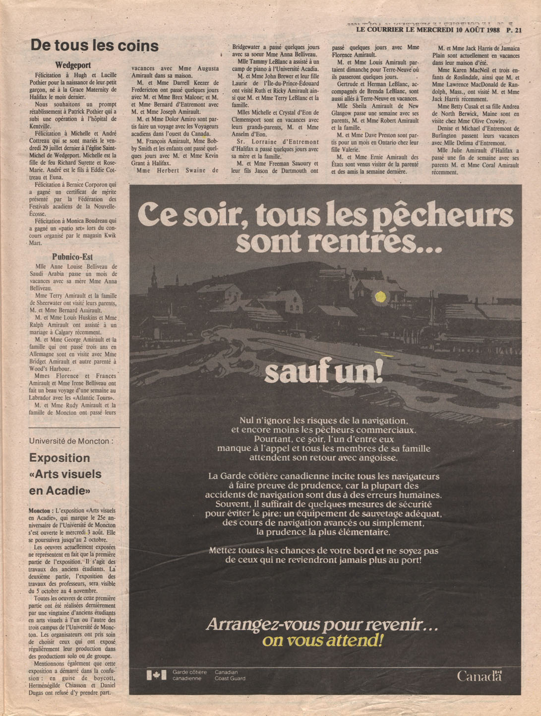 Le Courrier is Nova Scotia's leading French-language newspaper, and the only one with province-wide coverage and distribution. First published by Désiré d'Éon as Le Petit Courrier (Du Sud-Ouest de la Nouvelle-Écosse) on 10 February 1937, it has appeared weekly ever since, informing its readers, defending the interests of Acadians and francophones, and providing a bridge linking all Acadian regions in the province. It offers community news and events, extended articles, advertisements, announcements, photographs and special supplements, all directed towards supporting Nova Scotia's large, dispersed and diversified Acadian population, its businesses, industries, economy, daily activities, schools and higher education, politics, cultural life and heritage. Le Courrier offers an outstanding and unparalleled perspective on 66 years' accumulated history of Nova Scotia's Acadian population, thus enabling exploration of interests, activities, accomplishments, concerns and community issues across a broad swath of the 20th century.