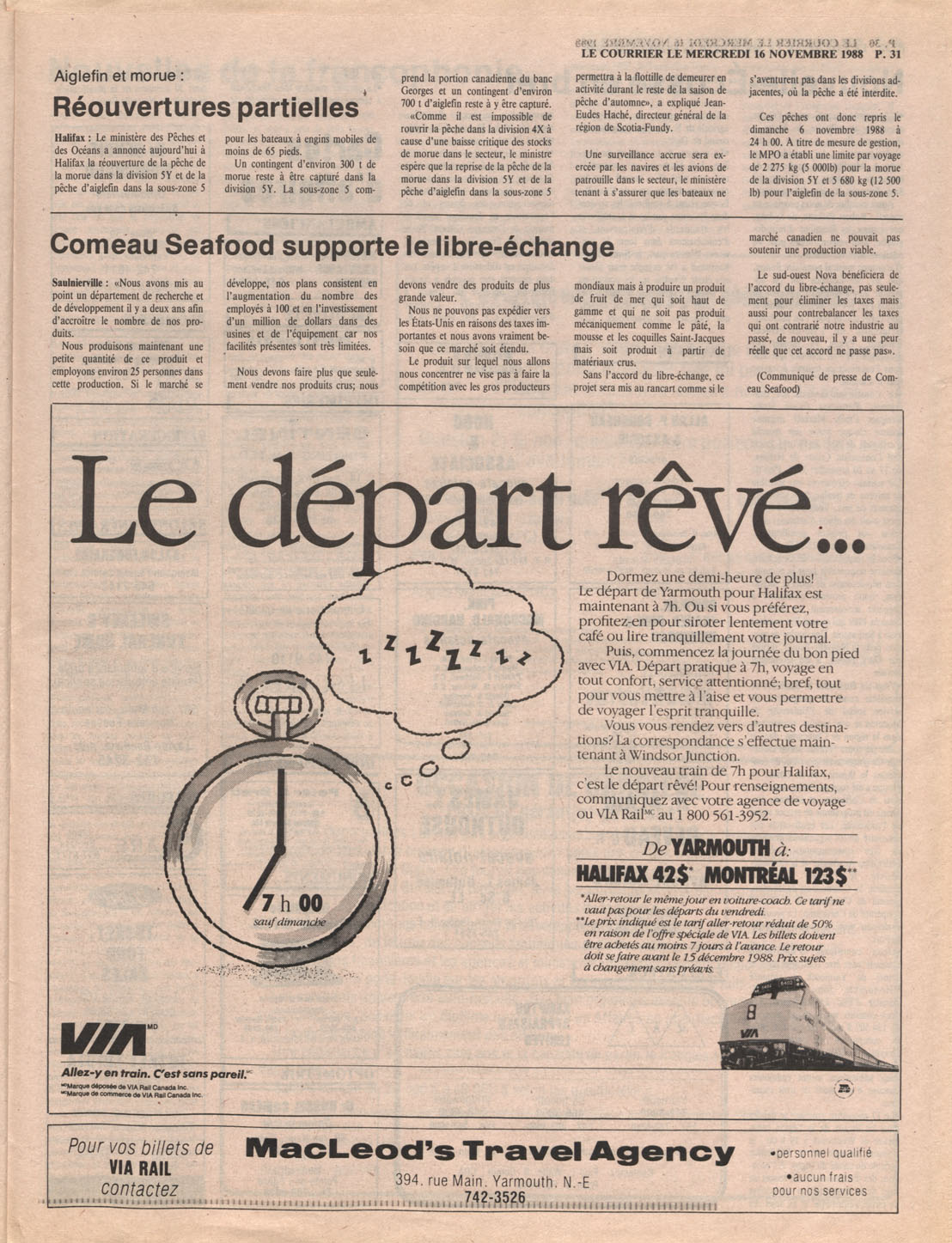 Le Courrier is Nova Scotia's leading French-language newspaper, and the only one with province-wide coverage and distribution. First published by Désiré d'Éon as Le Petit Courrier (Du Sud-Ouest de la Nouvelle-Écosse) on 10 February 1937, it has appeared weekly ever since, informing its readers, defending the interests of Acadians and francophones, and providing a bridge linking all Acadian regions in the province. It offers community news and events, extended articles, advertisements, announcements, photographs and special supplements, all directed towards supporting Nova Scotia's large, dispersed and diversified Acadian population, its businesses, industries, economy, daily activities, schools and higher education, politics, cultural life and heritage. Le Courrier offers an outstanding and unparalleled perspective on 66 years' accumulated history of Nova Scotia's Acadian population, thus enabling exploration of interests, activities, accomplishments, concerns and community issues across a broad swath of the 20th century.