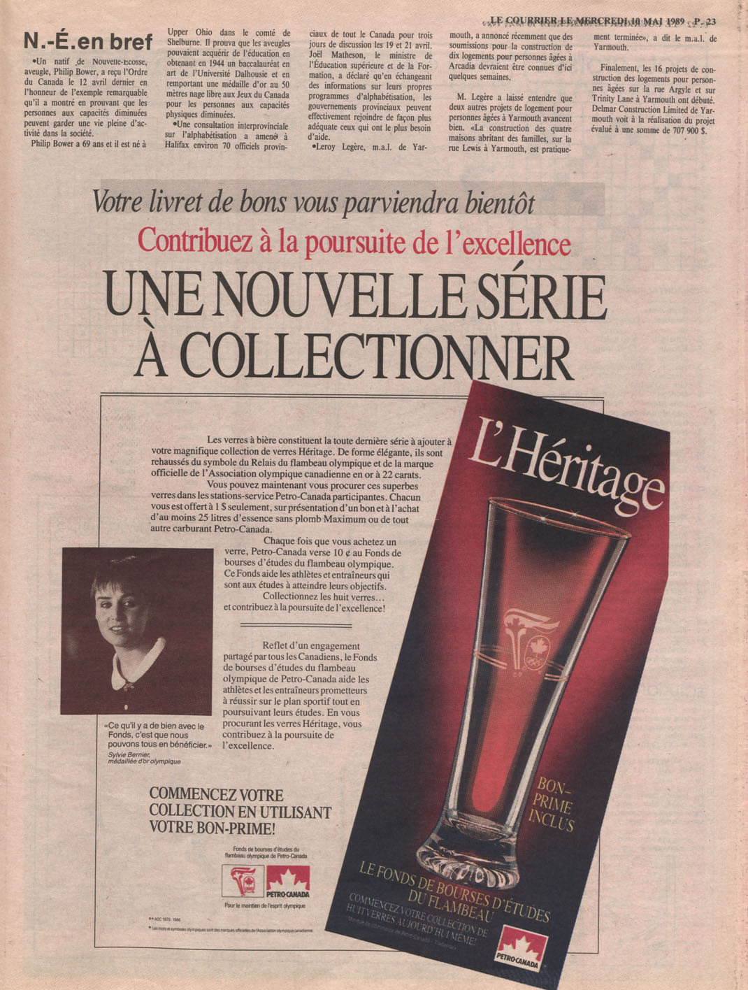 Le Courrier is Nova Scotia's leading French-language newspaper, and the only one with province-wide coverage and distribution. First published by Désiré d'Éon as Le Petit Courrier (Du Sud-Ouest de la Nouvelle-Écosse) on 10 February 1937, it has appeared weekly ever since, informing its readers, defending the interests of Acadians and francophones, and providing a bridge linking all Acadian regions in the province. It offers community news and events, extended articles, advertisements, announcements, photographs and special supplements, all directed towards supporting Nova Scotia's large, dispersed and diversified Acadian population, its businesses, industries, economy, daily activities, schools and higher education, politics, cultural life and heritage. Le Courrier offers an outstanding and unparalleled perspective on 66 years' accumulated history of Nova Scotia's Acadian population, thus enabling exploration of interests, activities, accomplishments, concerns and community issues across a broad swath of the 20th century.