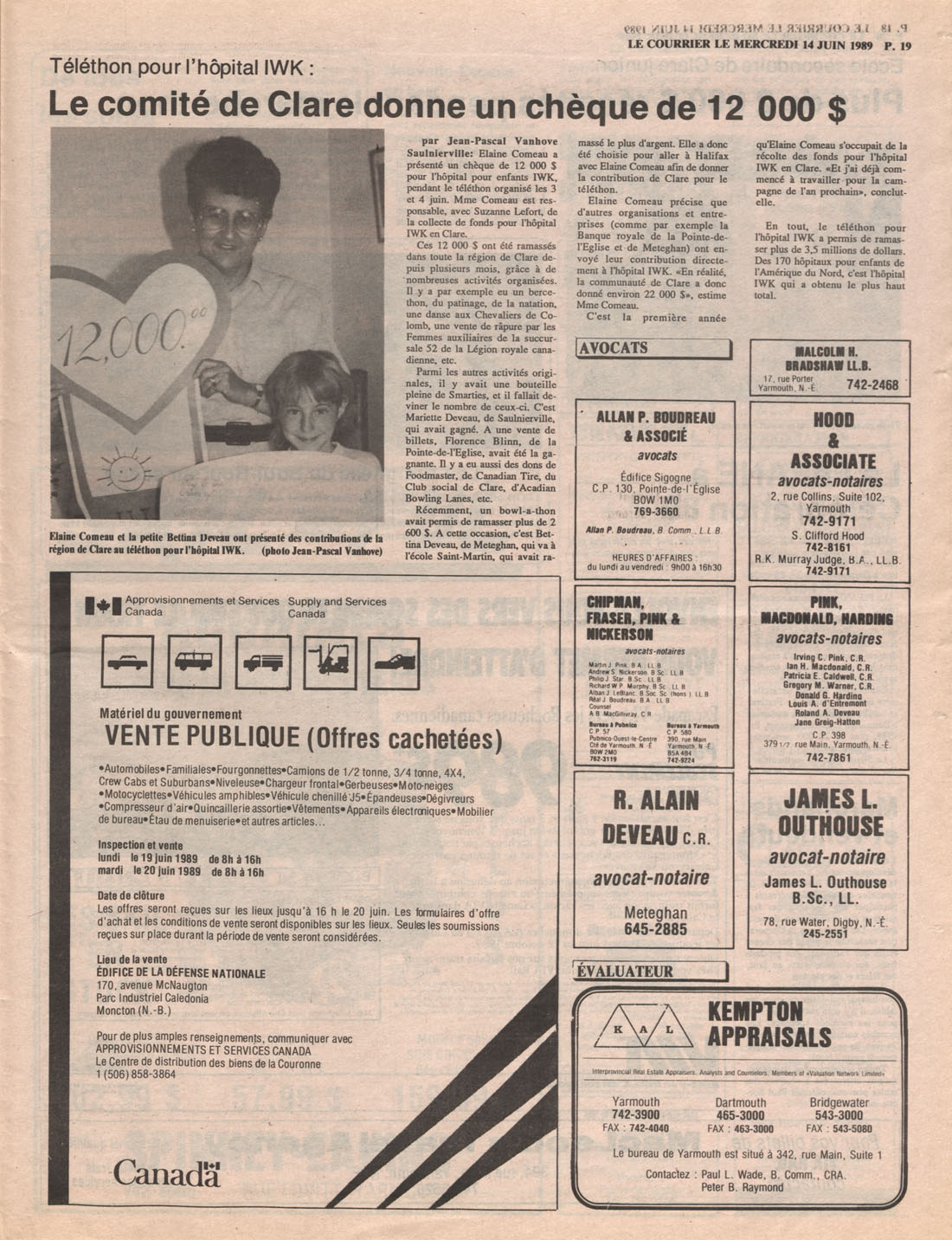 Le Courrier is Nova Scotia's leading French-language newspaper, and the only one with province-wide coverage and distribution. First published by Désiré d'Éon as Le Petit Courrier (Du Sud-Ouest de la Nouvelle-Écosse) on 10 February 1937, it has appeared weekly ever since, informing its readers, defending the interests of Acadians and francophones, and providing a bridge linking all Acadian regions in the province. It offers community news and events, extended articles, advertisements, announcements, photographs and special supplements, all directed towards supporting Nova Scotia's large, dispersed and diversified Acadian population, its businesses, industries, economy, daily activities, schools and higher education, politics, cultural life and heritage. Le Courrier offers an outstanding and unparalleled perspective on 66 years' accumulated history of Nova Scotia's Acadian population, thus enabling exploration of interests, activities, accomplishments, concerns and community issues across a broad swath of the 20th century.