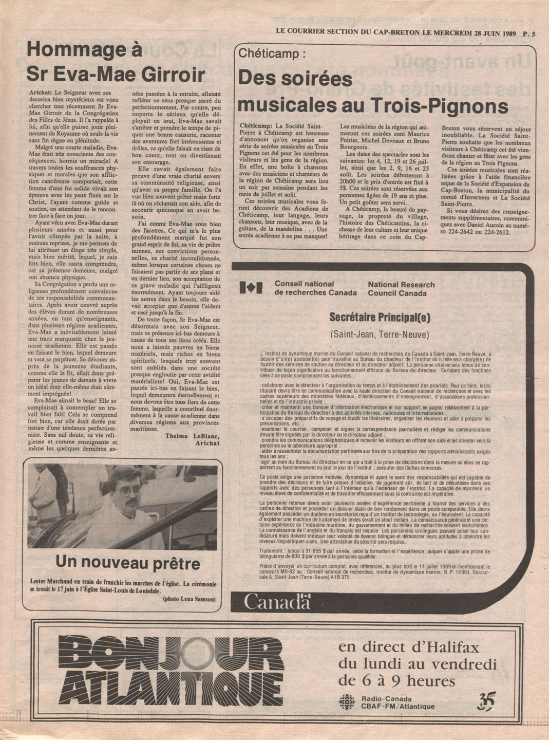 Le Courrier is Nova Scotia's leading French-language newspaper, and the only one with province-wide coverage and distribution. First published by Désiré d'Éon as Le Petit Courrier (Du Sud-Ouest de la Nouvelle-Écosse) on 10 February 1937, it has appeared weekly ever since, informing its readers, defending the interests of Acadians and francophones, and providing a bridge linking all Acadian regions in the province. It offers community news and events, extended articles, advertisements, announcements, photographs and special supplements, all directed towards supporting Nova Scotia's large, dispersed and diversified Acadian population, its businesses, industries, economy, daily activities, schools and higher education, politics, cultural life and heritage. Le Courrier offers an outstanding and unparalleled perspective on 66 years' accumulated history of Nova Scotia's Acadian population, thus enabling exploration of interests, activities, accomplishments, concerns and community issues across a broad swath of the 20th century.