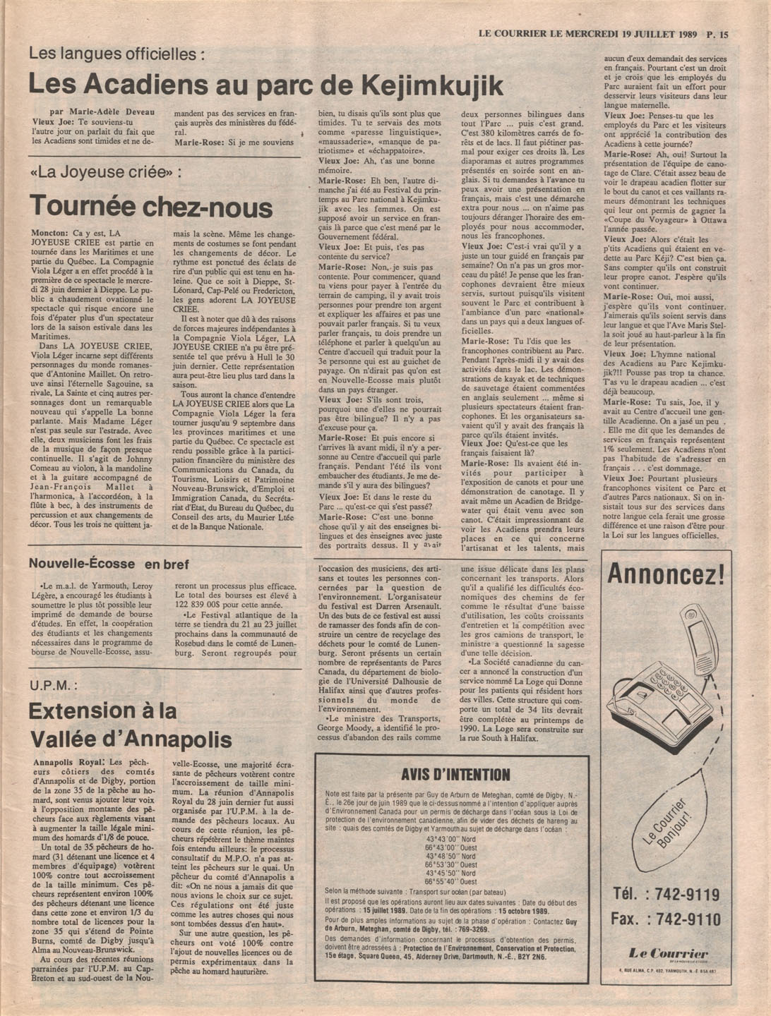 Le Courrier is Nova Scotia's leading French-language newspaper, and the only one with province-wide coverage and distribution. First published by Désiré d'Éon as Le Petit Courrier (Du Sud-Ouest de la Nouvelle-Écosse) on 10 February 1937, it has appeared weekly ever since, informing its readers, defending the interests of Acadians and francophones, and providing a bridge linking all Acadian regions in the province. It offers community news and events, extended articles, advertisements, announcements, photographs and special supplements, all directed towards supporting Nova Scotia's large, dispersed and diversified Acadian population, its businesses, industries, economy, daily activities, schools and higher education, politics, cultural life and heritage. Le Courrier offers an outstanding and unparalleled perspective on 66 years' accumulated history of Nova Scotia's Acadian population, thus enabling exploration of interests, activities, accomplishments, concerns and community issues across a broad swath of the 20th century.