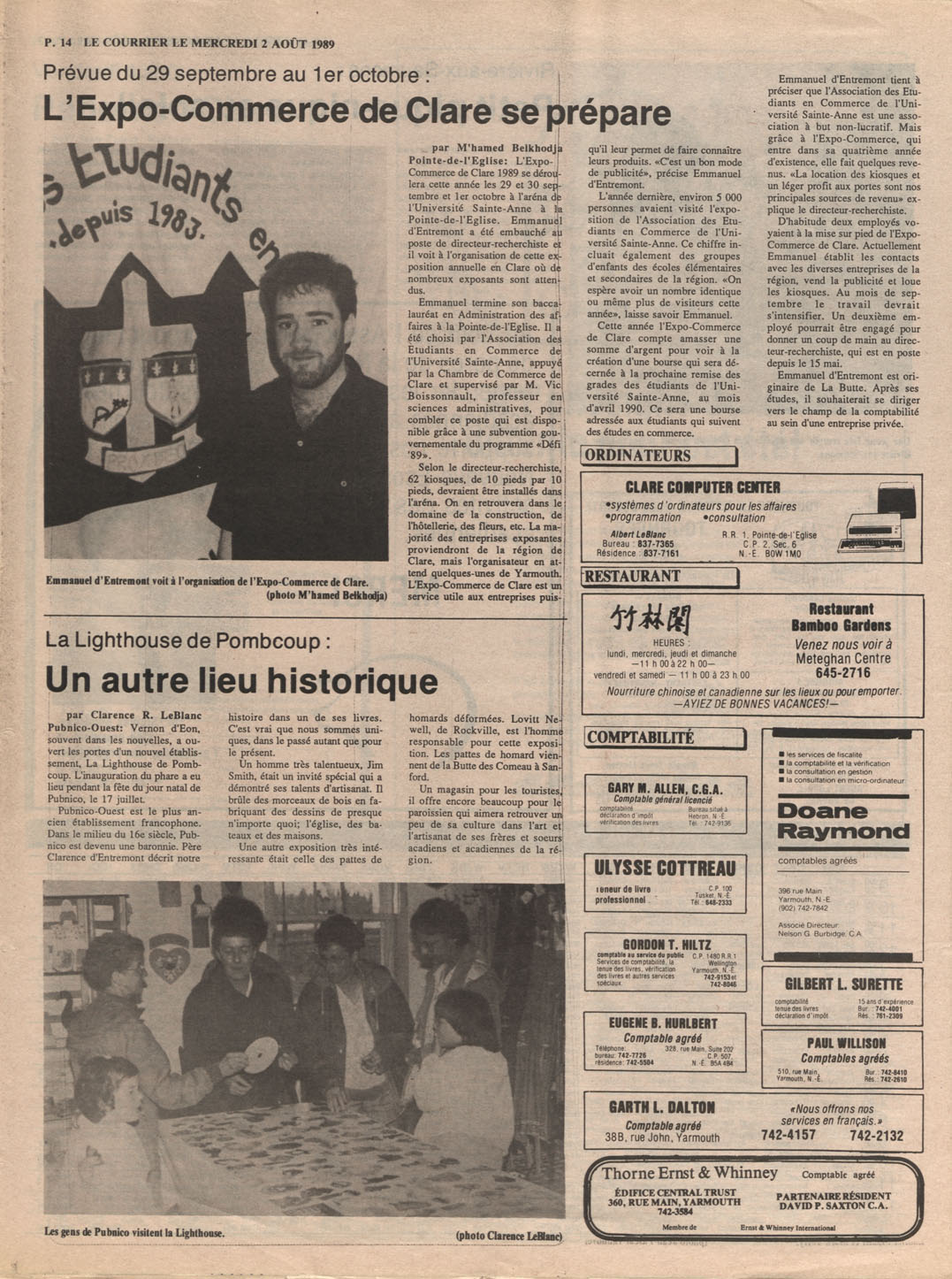 Le Courrier is Nova Scotia's leading French-language newspaper, and the only one with province-wide coverage and distribution. First published by Désiré d'Éon as Le Petit Courrier (Du Sud-Ouest de la Nouvelle-Écosse) on 10 February 1937, it has appeared weekly ever since, informing its readers, defending the interests of Acadians and francophones, and providing a bridge linking all Acadian regions in the province. It offers community news and events, extended articles, advertisements, announcements, photographs and special supplements, all directed towards supporting Nova Scotia's large, dispersed and diversified Acadian population, its businesses, industries, economy, daily activities, schools and higher education, politics, cultural life and heritage. Le Courrier offers an outstanding and unparalleled perspective on 66 years' accumulated history of Nova Scotia's Acadian population, thus enabling exploration of interests, activities, accomplishments, concerns and community issues across a broad swath of the 20th century.