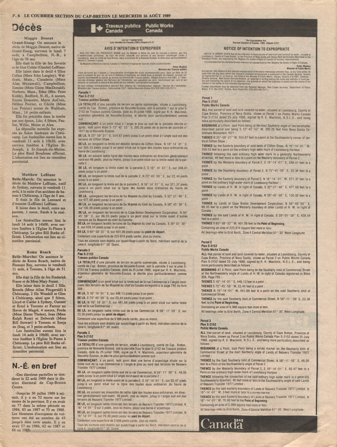 Le Courrier is Nova Scotia's leading French-language newspaper, and the only one with province-wide coverage and distribution. First published by Désiré d'Éon as Le Petit Courrier (Du Sud-Ouest de la Nouvelle-Écosse) on 10 February 1937, it has appeared weekly ever since, informing its readers, defending the interests of Acadians and francophones, and providing a bridge linking all Acadian regions in the province. It offers community news and events, extended articles, advertisements, announcements, photographs and special supplements, all directed towards supporting Nova Scotia's large, dispersed and diversified Acadian population, its businesses, industries, economy, daily activities, schools and higher education, politics, cultural life and heritage. Le Courrier offers an outstanding and unparalleled perspective on 66 years' accumulated history of Nova Scotia's Acadian population, thus enabling exploration of interests, activities, accomplishments, concerns and community issues across a broad swath of the 20th century.