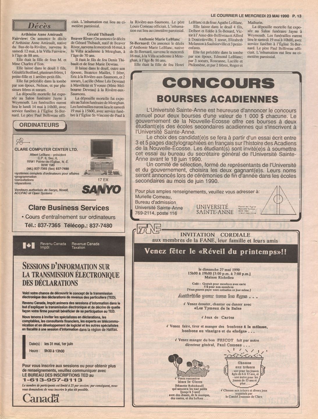 Le Courrier is Nova Scotia's leading French-language newspaper, and the only one with province-wide coverage and distribution. First published by Désiré d'Éon as Le Petit Courrier (Du Sud-Ouest de la Nouvelle-Écosse) on 10 February 1937, it has appeared weekly ever since, informing its readers, defending the interests of Acadians and francophones, and providing a bridge linking all Acadian regions in the province. It offers community news and events, extended articles, advertisements, announcements, photographs and special supplements, all directed towards supporting Nova Scotia's large, dispersed and diversified Acadian population, its businesses, industries, economy, daily activities, schools and higher education, politics, cultural life and heritage. Le Courrier offers an outstanding and unparalleled perspective on 66 years' accumulated history of Nova Scotia's Acadian population, thus enabling exploration of interests, activities, accomplishments, concerns and community issues across a broad swath of the 20th century.