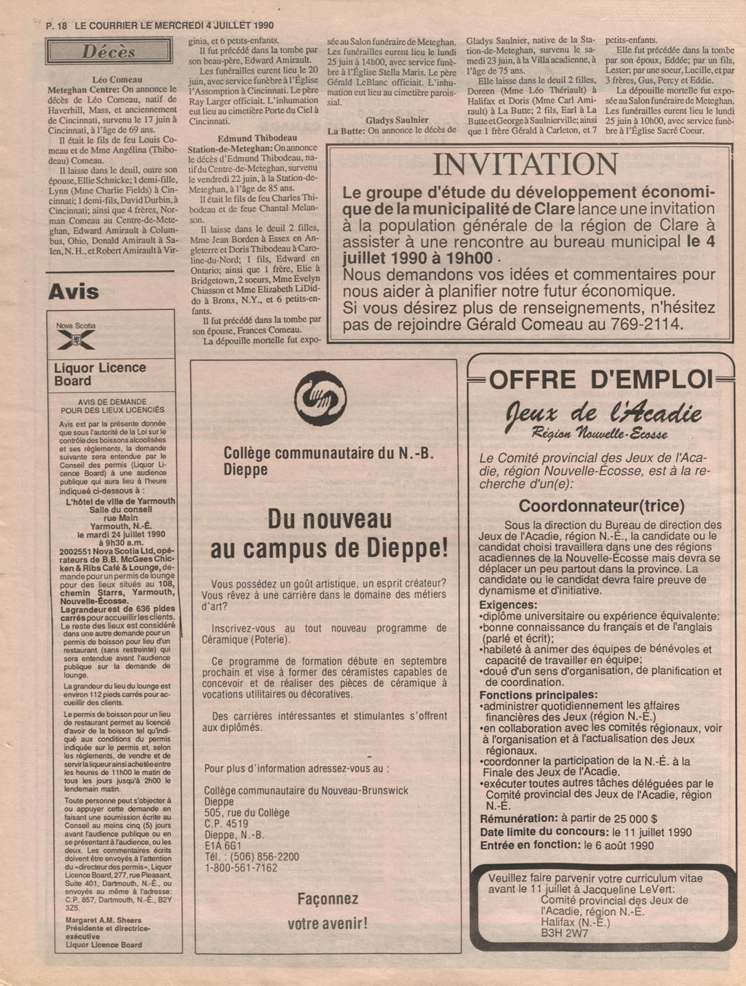 Le Courrier is Nova Scotia's leading French-language newspaper, and the only one with province-wide coverage and distribution. First published by Désiré d'Éon as Le Petit Courrier (Du Sud-Ouest de la Nouvelle-Écosse) on 10 February 1937, it has appeared weekly ever since, informing its readers, defending the interests of Acadians and francophones, and providing a bridge linking all Acadian regions in the province. It offers community news and events, extended articles, advertisements, announcements, photographs and special supplements, all directed towards supporting Nova Scotia's large, dispersed and diversified Acadian population, its businesses, industries, economy, daily activities, schools and higher education, politics, cultural life and heritage. Le Courrier offers an outstanding and unparalleled perspective on 66 years' accumulated history of Nova Scotia's Acadian population, thus enabling exploration of interests, activities, accomplishments, concerns and community issues across a broad swath of the 20th century.