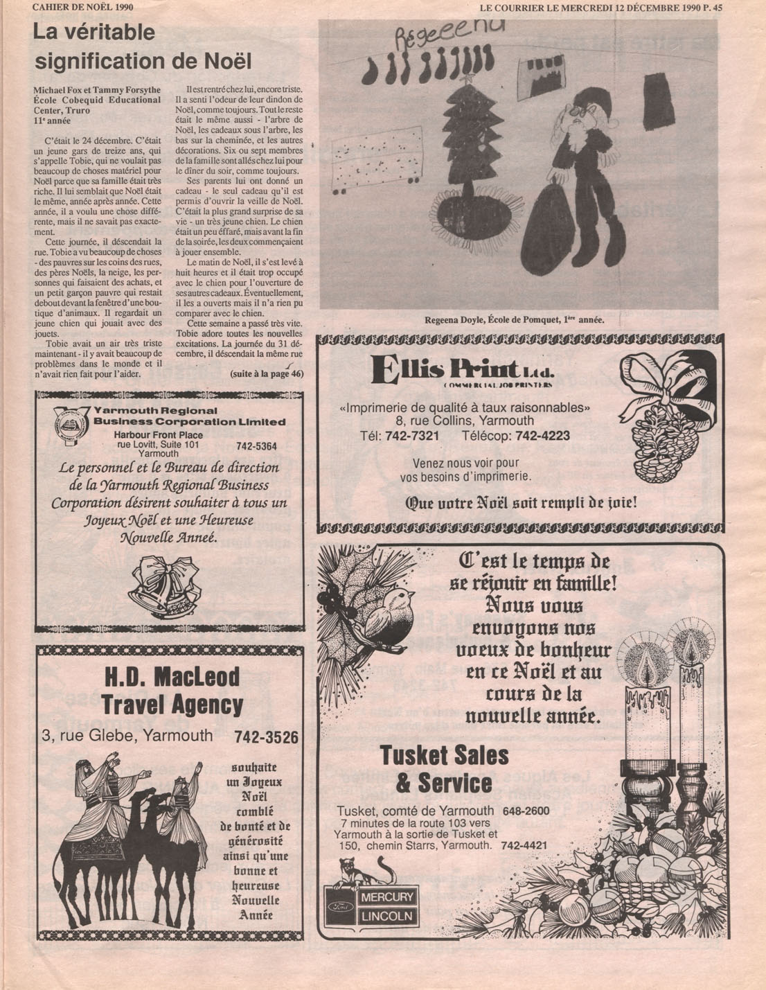 Le Courrier is Nova Scotia's leading French-language newspaper, and the only one with province-wide coverage and distribution. First published by Désiré d'Éon as Le Petit Courrier (Du Sud-Ouest de la Nouvelle-Écosse) on 10 February 1937, it has appeared weekly ever since, informing its readers, defending the interests of Acadians and francophones, and providing a bridge linking all Acadian regions in the province. It offers community news and events, extended articles, advertisements, announcements, photographs and special supplements, all directed towards supporting Nova Scotia's large, dispersed and diversified Acadian population, its businesses, industries, economy, daily activities, schools and higher education, politics, cultural life and heritage. Le Courrier offers an outstanding and unparalleled perspective on 66 years' accumulated history of Nova Scotia's Acadian population, thus enabling exploration of interests, activities, accomplishments, concerns and community issues across a broad swath of the 20th century.