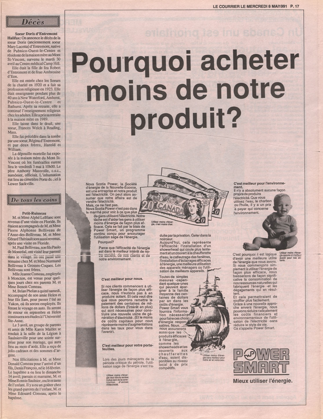 Le Courrier is Nova Scotia's leading French-language newspaper, and the only one with province-wide coverage and distribution. First published by Désiré d'Éon as Le Petit Courrier (Du Sud-Ouest de la Nouvelle-Écosse) on 10 February 1937, it has appeared weekly ever since, informing its readers, defending the interests of Acadians and francophones, and providing a bridge linking all Acadian regions in the province. It offers community news and events, extended articles, advertisements, announcements, photographs and special supplements, all directed towards supporting Nova Scotia's large, dispersed and diversified Acadian population, its businesses, industries, economy, daily activities, schools and higher education, politics, cultural life and heritage. Le Courrier offers an outstanding and unparalleled perspective on 66 years' accumulated history of Nova Scotia's Acadian population, thus enabling exploration of interests, activities, accomplishments, concerns and community issues across a broad swath of the 20th century.