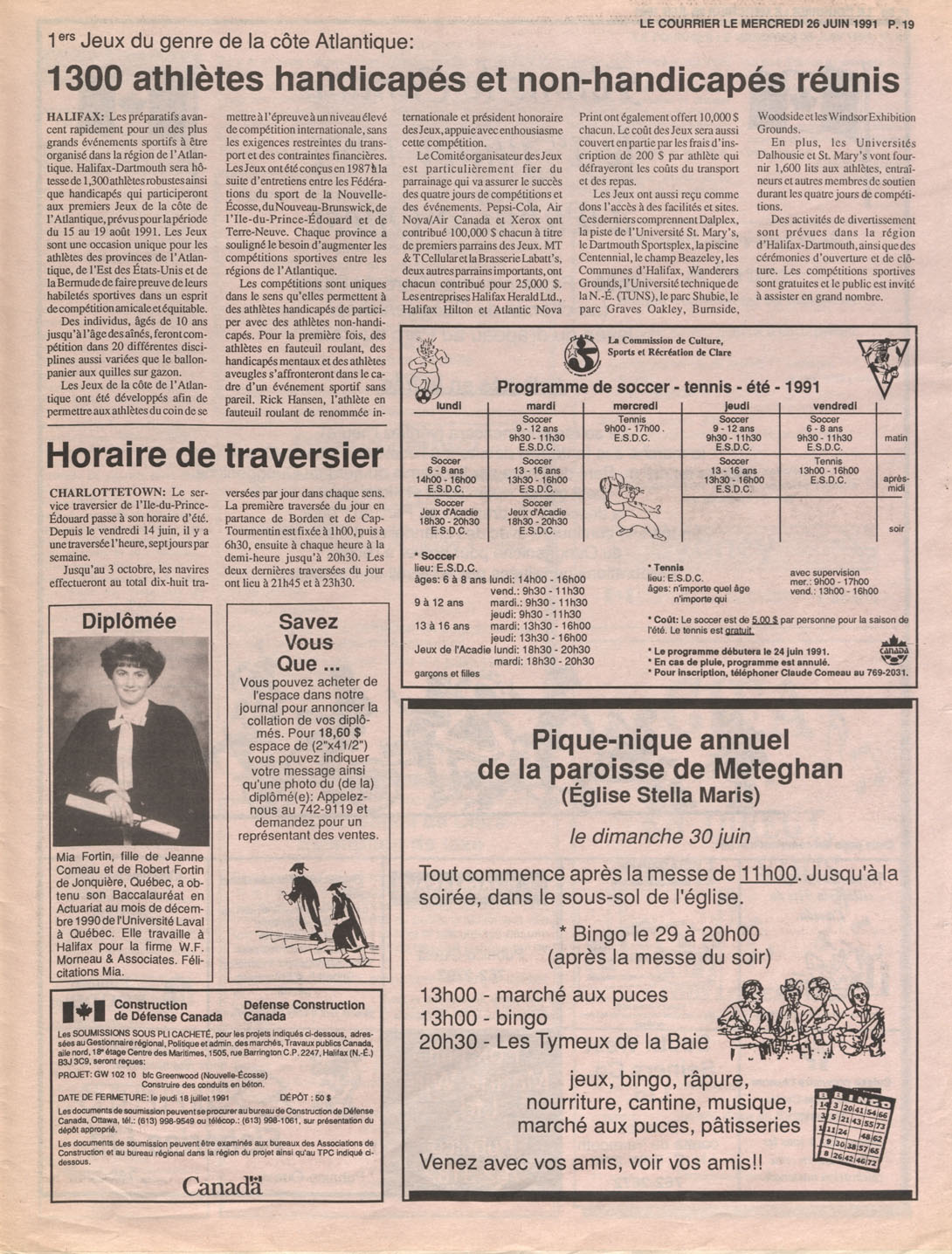 Le Courrier is Nova Scotia's leading French-language newspaper, and the only one with province-wide coverage and distribution. First published by Désiré d'Éon as Le Petit Courrier (Du Sud-Ouest de la Nouvelle-Écosse) on 10 February 1937, it has appeared weekly ever since, informing its readers, defending the interests of Acadians and francophones, and providing a bridge linking all Acadian regions in the province. It offers community news and events, extended articles, advertisements, announcements, photographs and special supplements, all directed towards supporting Nova Scotia's large, dispersed and diversified Acadian population, its businesses, industries, economy, daily activities, schools and higher education, politics, cultural life and heritage. Le Courrier offers an outstanding and unparalleled perspective on 66 years' accumulated history of Nova Scotia's Acadian population, thus enabling exploration of interests, activities, accomplishments, concerns and community issues across a broad swath of the 20th century.