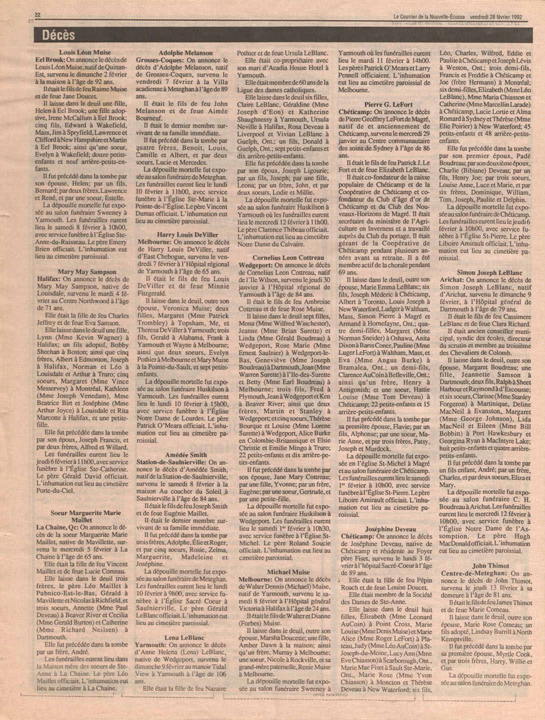 Le Courrier is Nova Scotia's leading French-language newspaper, and the only one with province-wide coverage and distribution. First published by Désiré d'Éon as Le Petit Courrier (Du Sud-Ouest de la Nouvelle-Écosse) on 10 February 1937, it has appeared weekly ever since, informing its readers, defending the interests of Acadians and francophones, and providing a bridge linking all Acadian regions in the province. It offers community news and events, extended articles, advertisements, announcements, photographs and special supplements, all directed towards supporting Nova Scotia's large, dispersed and diversified Acadian population, its businesses, industries, economy, daily activities, schools and higher education, politics, cultural life and heritage. Le Courrier offers an outstanding and unparalleled perspective on 66 years' accumulated history of Nova Scotia's Acadian population, thus enabling exploration of interests, activities, accomplishments, concerns and community issues across a broad swath of the 20th century.