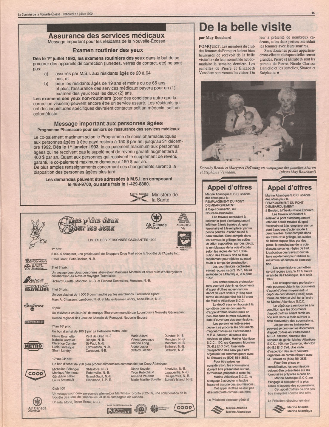Le Courrier is Nova Scotia's leading French-language newspaper, and the only one with province-wide coverage and distribution. First published by Désiré d'Éon as Le Petit Courrier (Du Sud-Ouest de la Nouvelle-Écosse) on 10 February 1937, it has appeared weekly ever since, informing its readers, defending the interests of Acadians and francophones, and providing a bridge linking all Acadian regions in the province. It offers community news and events, extended articles, advertisements, announcements, photographs and special supplements, all directed towards supporting Nova Scotia's large, dispersed and diversified Acadian population, its businesses, industries, economy, daily activities, schools and higher education, politics, cultural life and heritage. Le Courrier offers an outstanding and unparalleled perspective on 66 years' accumulated history of Nova Scotia's Acadian population, thus enabling exploration of interests, activities, accomplishments, concerns and community issues across a broad swath of the 20th century.