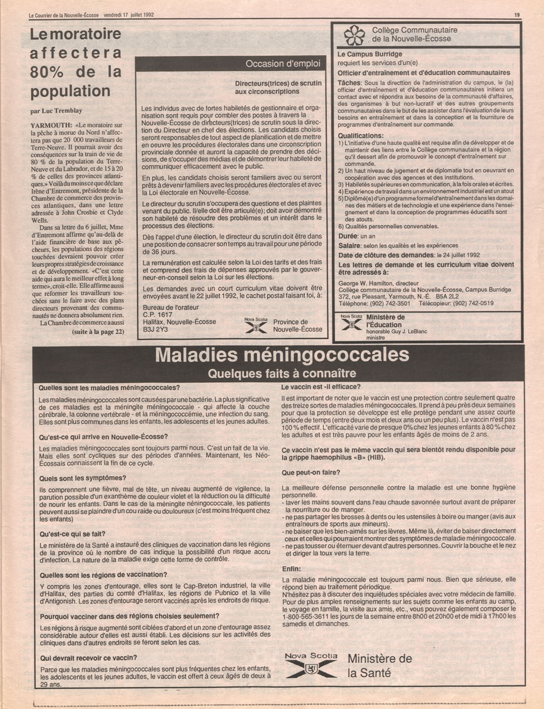 Le Courrier is Nova Scotia's leading French-language newspaper, and the only one with province-wide coverage and distribution. First published by Désiré d'Éon as Le Petit Courrier (Du Sud-Ouest de la Nouvelle-Écosse) on 10 February 1937, it has appeared weekly ever since, informing its readers, defending the interests of Acadians and francophones, and providing a bridge linking all Acadian regions in the province. It offers community news and events, extended articles, advertisements, announcements, photographs and special supplements, all directed towards supporting Nova Scotia's large, dispersed and diversified Acadian population, its businesses, industries, economy, daily activities, schools and higher education, politics, cultural life and heritage. Le Courrier offers an outstanding and unparalleled perspective on 66 years' accumulated history of Nova Scotia's Acadian population, thus enabling exploration of interests, activities, accomplishments, concerns and community issues across a broad swath of the 20th century.