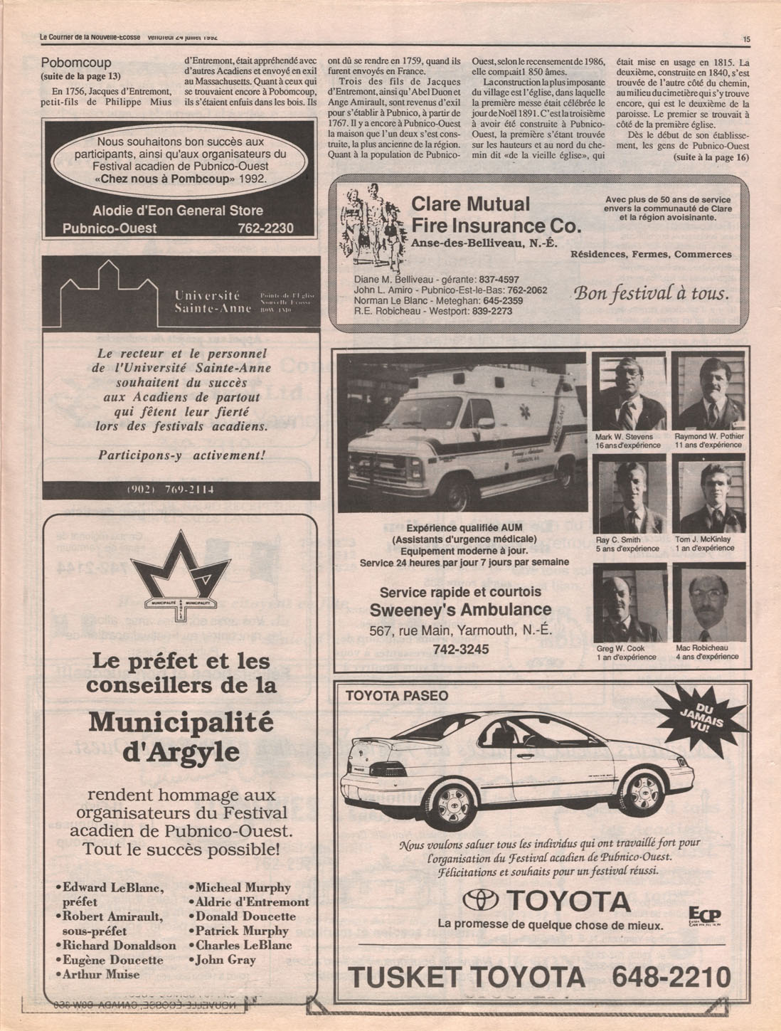 Le Courrier is Nova Scotia's leading French-language newspaper, and the only one with province-wide coverage and distribution. First published by Désiré d'Éon as Le Petit Courrier (Du Sud-Ouest de la Nouvelle-Écosse) on 10 February 1937, it has appeared weekly ever since, informing its readers, defending the interests of Acadians and francophones, and providing a bridge linking all Acadian regions in the province. It offers community news and events, extended articles, advertisements, announcements, photographs and special supplements, all directed towards supporting Nova Scotia's large, dispersed and diversified Acadian population, its businesses, industries, economy, daily activities, schools and higher education, politics, cultural life and heritage. Le Courrier offers an outstanding and unparalleled perspective on 66 years' accumulated history of Nova Scotia's Acadian population, thus enabling exploration of interests, activities, accomplishments, concerns and community issues across a broad swath of the 20th century.