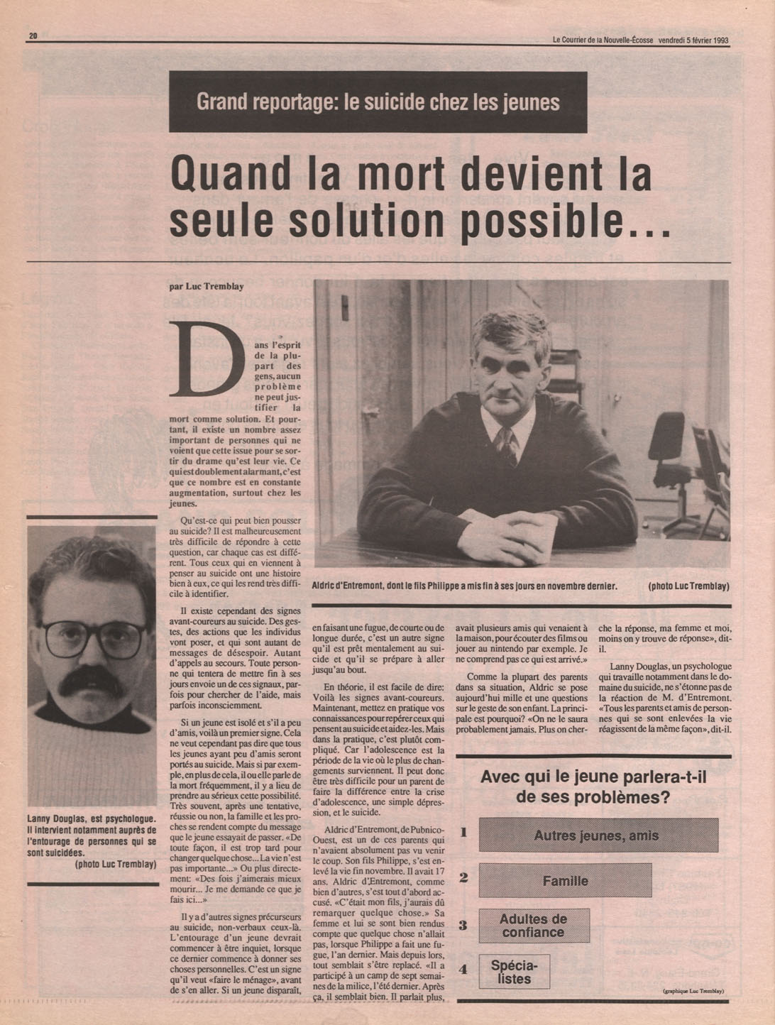 Le Courrier is Nova Scotia's leading French-language newspaper, and the only one with province-wide coverage and distribution. First published by Désiré d'Éon as Le Petit Courrier (Du Sud-Ouest de la Nouvelle-Écosse) on 10 February 1937, it has appeared weekly ever since, informing its readers, defending the interests of Acadians and francophones, and providing a bridge linking all Acadian regions in the province. It offers community news and events, extended articles, advertisements, announcements, photographs and special supplements, all directed towards supporting Nova Scotia's large, dispersed and diversified Acadian population, its businesses, industries, economy, daily activities, schools and higher education, politics, cultural life and heritage. Le Courrier offers an outstanding and unparalleled perspective on 66 years' accumulated history of Nova Scotia's Acadian population, thus enabling exploration of interests, activities, accomplishments, concerns and community issues across a broad swath of the 20th century.