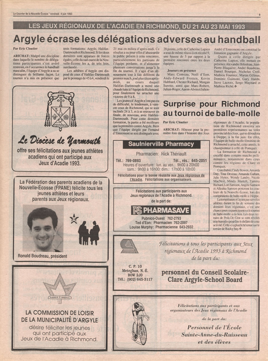 Le Courrier is Nova Scotia's leading French-language newspaper, and the only one with province-wide coverage and distribution. First published by Désiré d'Éon as Le Petit Courrier (Du Sud-Ouest de la Nouvelle-Écosse) on 10 February 1937, it has appeared weekly ever since, informing its readers, defending the interests of Acadians and francophones, and providing a bridge linking all Acadian regions in the province. It offers community news and events, extended articles, advertisements, announcements, photographs and special supplements, all directed towards supporting Nova Scotia's large, dispersed and diversified Acadian population, its businesses, industries, economy, daily activities, schools and higher education, politics, cultural life and heritage. Le Courrier offers an outstanding and unparalleled perspective on 66 years' accumulated history of Nova Scotia's Acadian population, thus enabling exploration of interests, activities, accomplishments, concerns and community issues across a broad swath of the 20th century.