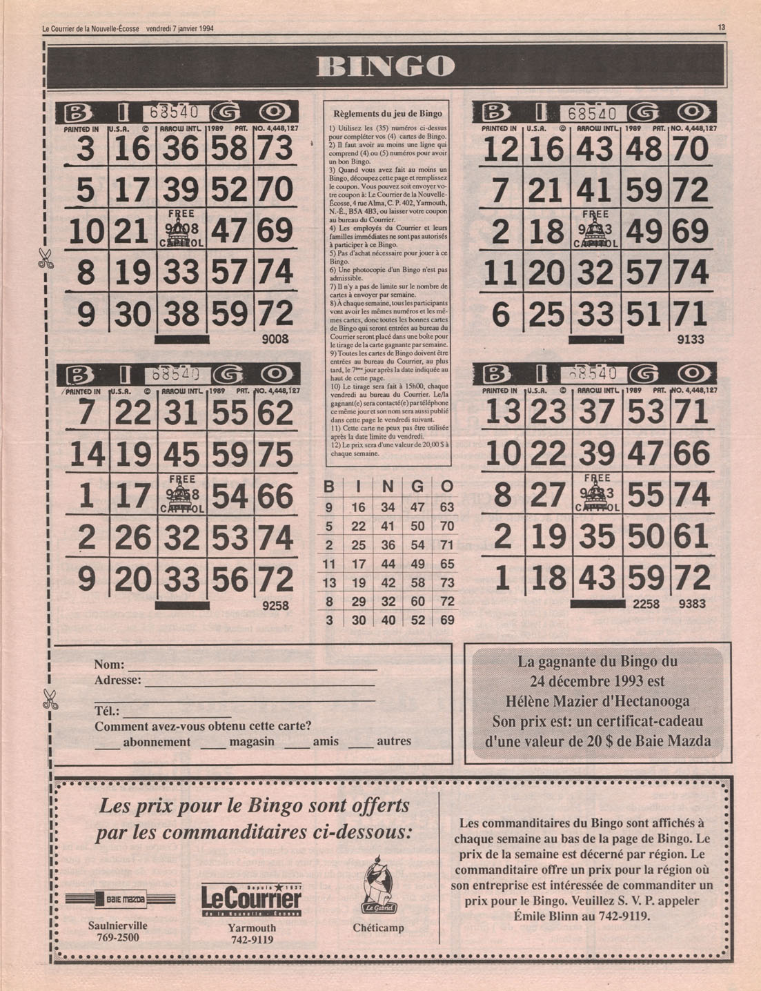 Le Courrier is Nova Scotia's leading French-language newspaper, and the only one with province-wide coverage and distribution. First published by Désiré d'Éon as Le Petit Courrier (Du Sud-Ouest de la Nouvelle-Écosse) on 10 February 1937, it has appeared weekly ever since, informing its readers, defending the interests of Acadians and francophones, and providing a bridge linking all Acadian regions in the province. It offers community news and events, extended articles, advertisements, announcements, photographs and special supplements, all directed towards supporting Nova Scotia's large, dispersed and diversified Acadian population, its businesses, industries, economy, daily activities, schools and higher education, politics, cultural life and heritage. Le Courrier offers an outstanding and unparalleled perspective on 66 years' accumulated history of Nova Scotia's Acadian population, thus enabling exploration of interests, activities, accomplishments, concerns and community issues across a broad swath of the 20th century.