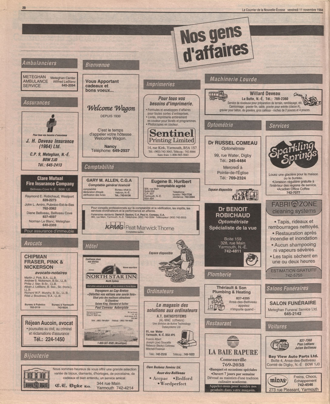 Le Courrier is Nova Scotia's leading French-language newspaper, and the only one with province-wide coverage and distribution. First published by Désiré d'Éon as Le Petit Courrier (Du Sud-Ouest de la Nouvelle-Écosse) on 10 February 1937, it has appeared weekly ever since, informing its readers, defending the interests of Acadians and francophones, and providing a bridge linking all Acadian regions in the province. It offers community news and events, extended articles, advertisements, announcements, photographs and special supplements, all directed towards supporting Nova Scotia's large, dispersed and diversified Acadian population, its businesses, industries, economy, daily activities, schools and higher education, politics, cultural life and heritage. Le Courrier offers an outstanding and unparalleled perspective on 66 years' accumulated history of Nova Scotia's Acadian population, thus enabling exploration of interests, activities, accomplishments, concerns and community issues across a broad swath of the 20th century.