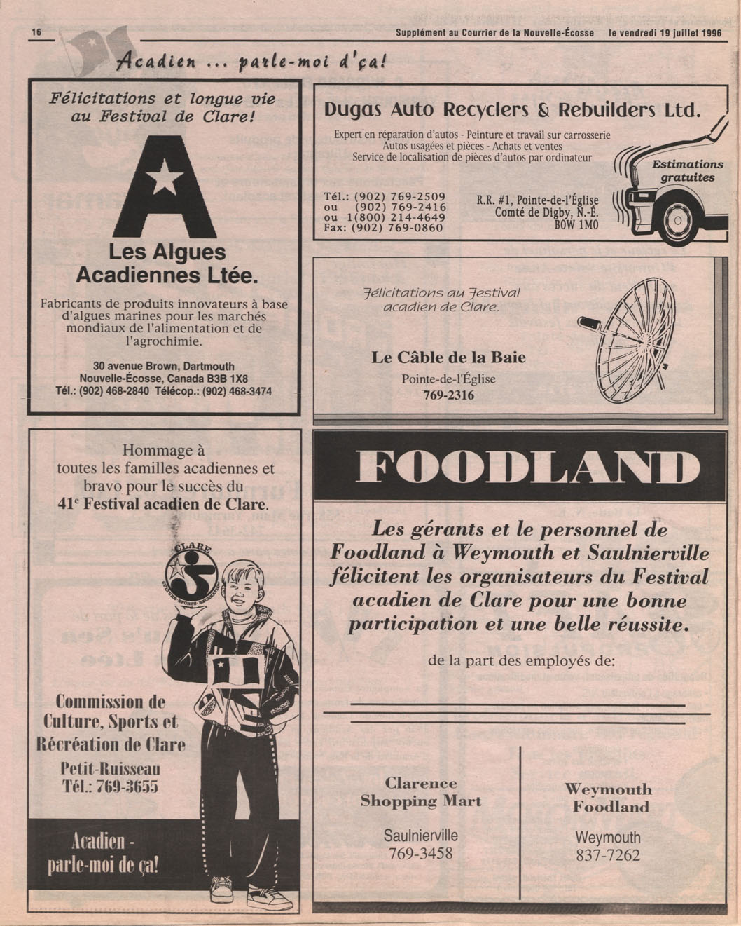 Le Courrier is Nova Scotia's leading French-language newspaper, and the only one with province-wide coverage and distribution. First published by Désiré d'Éon as Le Petit Courrier (Du Sud-Ouest de la Nouvelle-Écosse) on 10 February 1937, it has appeared weekly ever since, informing its readers, defending the interests of Acadians and francophones, and providing a bridge linking all Acadian regions in the province. It offers community news and events, extended articles, advertisements, announcements, photographs and special supplements, all directed towards supporting Nova Scotia's large, dispersed and diversified Acadian population, its businesses, industries, economy, daily activities, schools and higher education, politics, cultural life and heritage. Le Courrier offers an outstanding and unparalleled perspective on 66 years' accumulated history of Nova Scotia's Acadian population, thus enabling exploration of interests, activities, accomplishments, concerns and community issues across a broad swath of the 20th century.