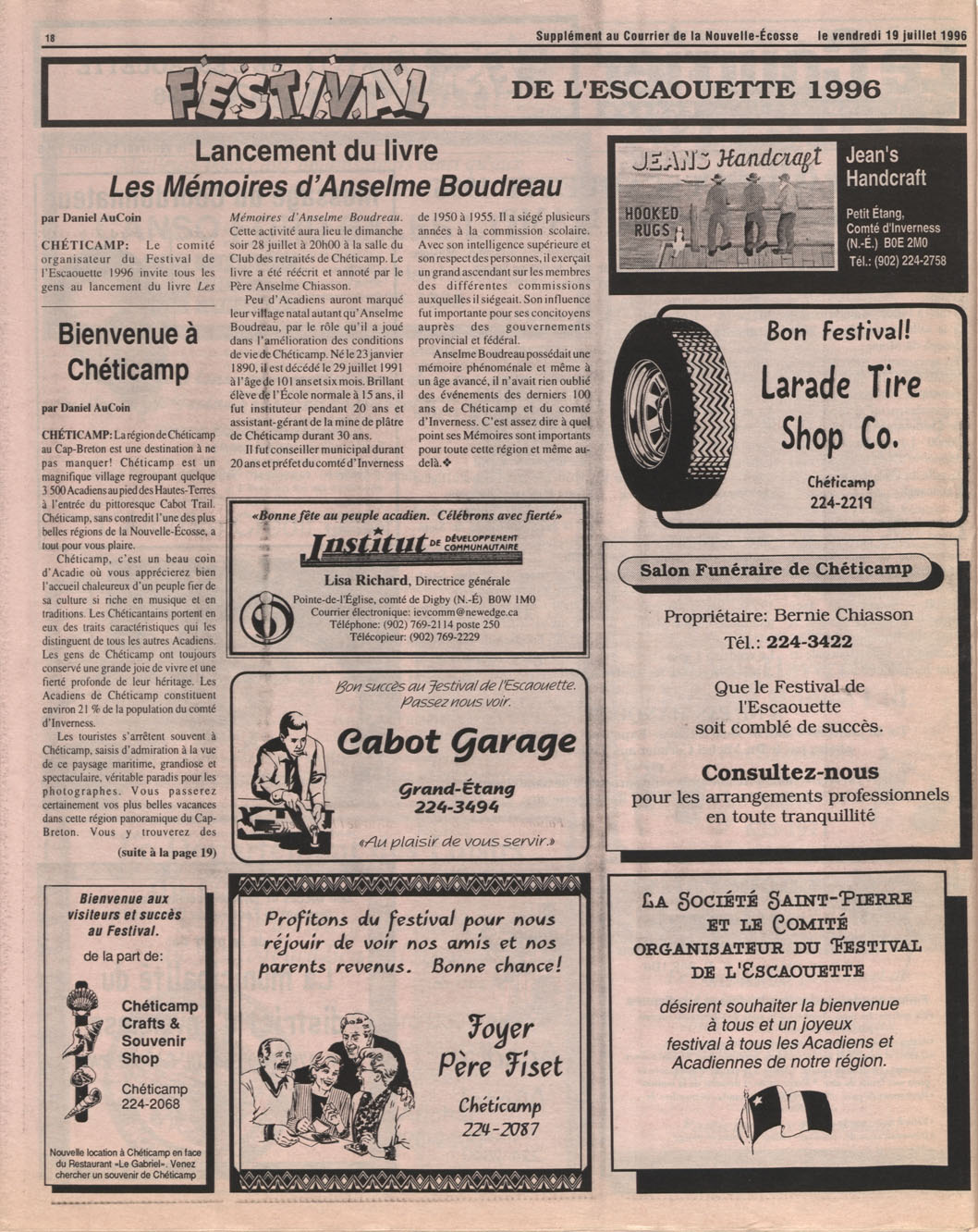 Le Courrier is Nova Scotia's leading French-language newspaper, and the only one with province-wide coverage and distribution. First published by Désiré d'Éon as Le Petit Courrier (Du Sud-Ouest de la Nouvelle-Écosse) on 10 February 1937, it has appeared weekly ever since, informing its readers, defending the interests of Acadians and francophones, and providing a bridge linking all Acadian regions in the province. It offers community news and events, extended articles, advertisements, announcements, photographs and special supplements, all directed towards supporting Nova Scotia's large, dispersed and diversified Acadian population, its businesses, industries, economy, daily activities, schools and higher education, politics, cultural life and heritage. Le Courrier offers an outstanding and unparalleled perspective on 66 years' accumulated history of Nova Scotia's Acadian population, thus enabling exploration of interests, activities, accomplishments, concerns and community issues across a broad swath of the 20th century.