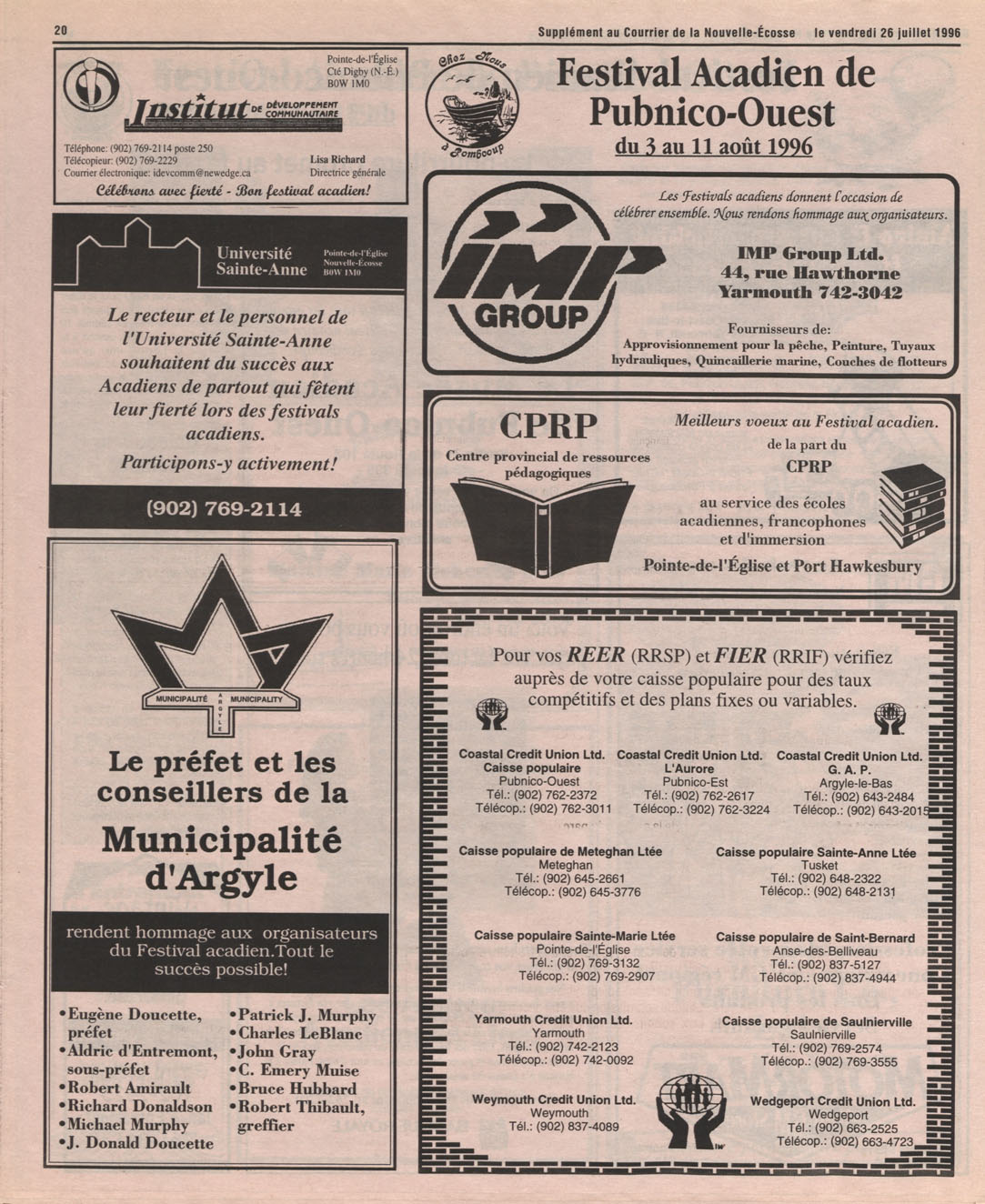 Le Courrier is Nova Scotia's leading French-language newspaper, and the only one with province-wide coverage and distribution. First published by Désiré d'Éon as Le Petit Courrier (Du Sud-Ouest de la Nouvelle-Écosse) on 10 February 1937, it has appeared weekly ever since, informing its readers, defending the interests of Acadians and francophones, and providing a bridge linking all Acadian regions in the province. It offers community news and events, extended articles, advertisements, announcements, photographs and special supplements, all directed towards supporting Nova Scotia's large, dispersed and diversified Acadian population, its businesses, industries, economy, daily activities, schools and higher education, politics, cultural life and heritage. Le Courrier offers an outstanding and unparalleled perspective on 66 years' accumulated history of Nova Scotia's Acadian population, thus enabling exploration of interests, activities, accomplishments, concerns and community issues across a broad swath of the 20th century.