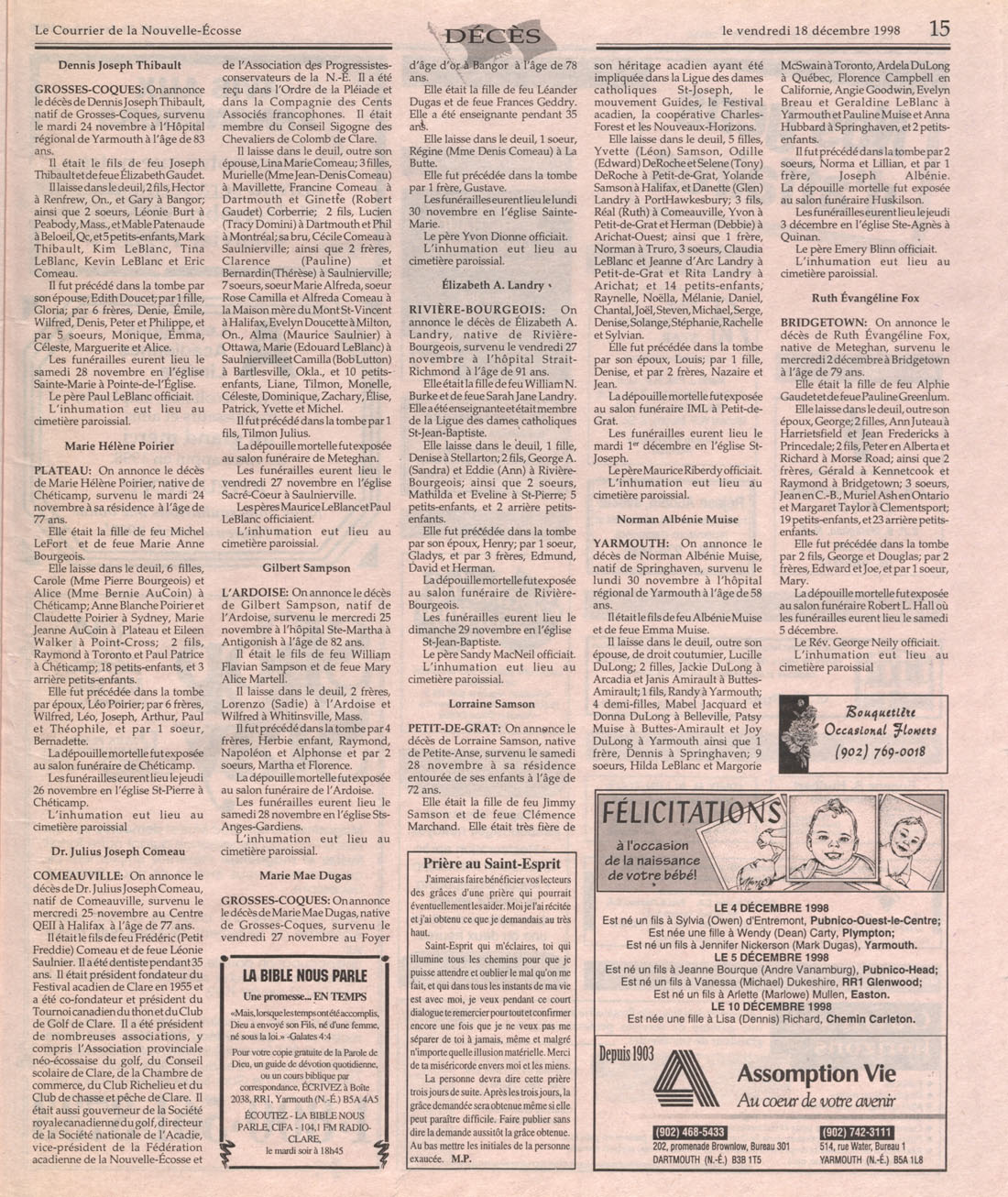 Le Courrier is Nova Scotia's leading French-language newspaper, and the only one with province-wide coverage and distribution. First published by Désiré d'Éon as Le Petit Courrier (Du Sud-Ouest de la Nouvelle-Écosse) on 10 February 1937, it has appeared weekly ever since, informing its readers, defending the interests of Acadians and francophones, and providing a bridge linking all Acadian regions in the province. It offers community news and events, extended articles, advertisements, announcements, photographs and special supplements, all directed towards supporting Nova Scotia's large, dispersed and diversified Acadian population, its businesses, industries, economy, daily activities, schools and higher education, politics, cultural life and heritage. Le Courrier offers an outstanding and unparalleled perspective on 66 years' accumulated history of Nova Scotia's Acadian population, thus enabling exploration of interests, activities, accomplishments, concerns and community issues across a broad swath of the 20th century.