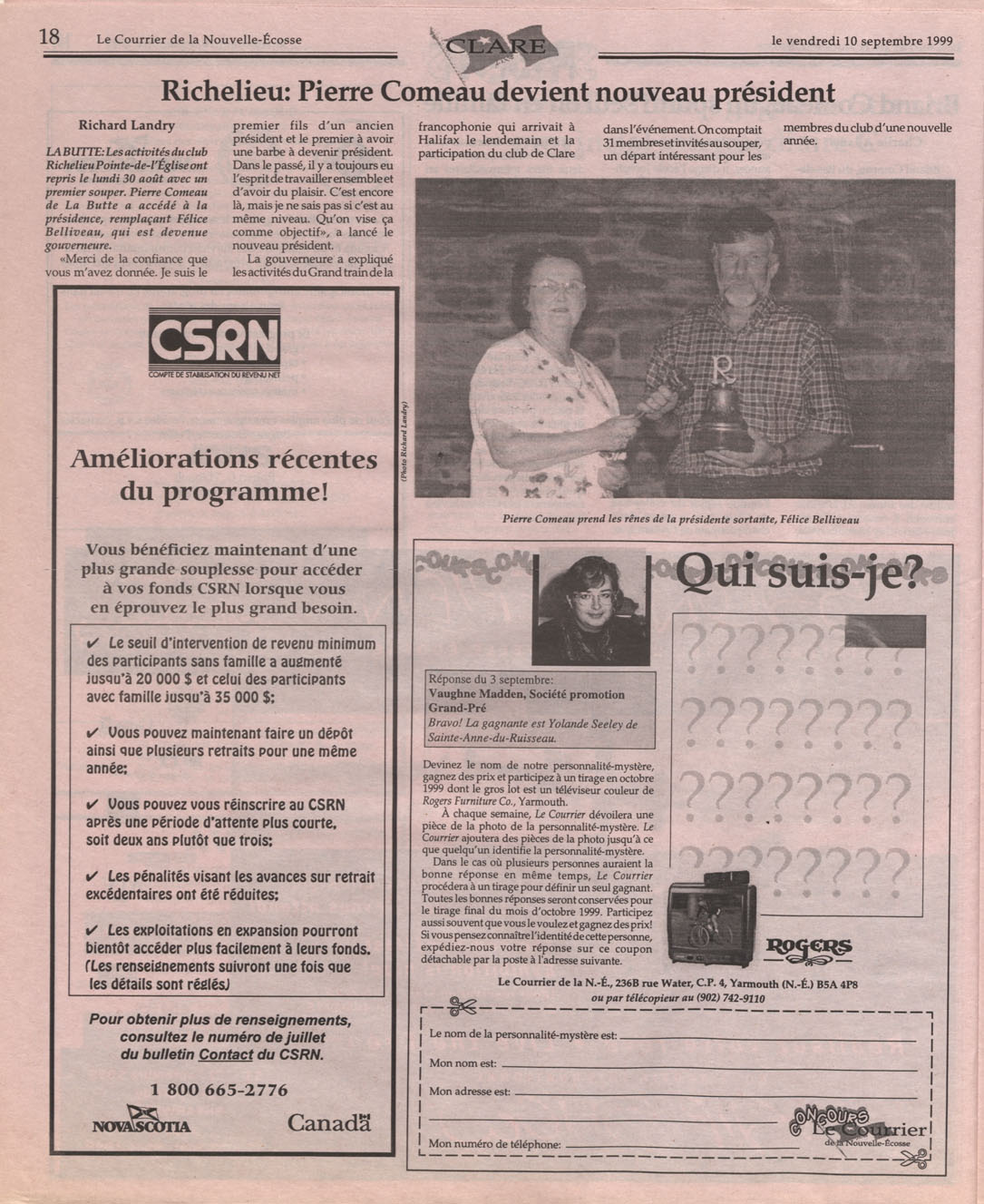 Le Courrier is Nova Scotia's leading French-language newspaper, and the only one with province-wide coverage and distribution. First published by Désiré d'Éon as Le Petit Courrier (Du Sud-Ouest de la Nouvelle-Écosse) on 10 February 1937, it has appeared weekly ever since, informing its readers, defending the interests of Acadians and francophones, and providing a bridge linking all Acadian regions in the province. It offers community news and events, extended articles, advertisements, announcements, photographs and special supplements, all directed towards supporting Nova Scotia's large, dispersed and diversified Acadian population, its businesses, industries, economy, daily activities, schools and higher education, politics, cultural life and heritage. Le Courrier offers an outstanding and unparalleled perspective on 66 years' accumulated history of Nova Scotia's Acadian population, thus enabling exploration of interests, activities, accomplishments, concerns and community issues across a broad swath of the 20th century.
