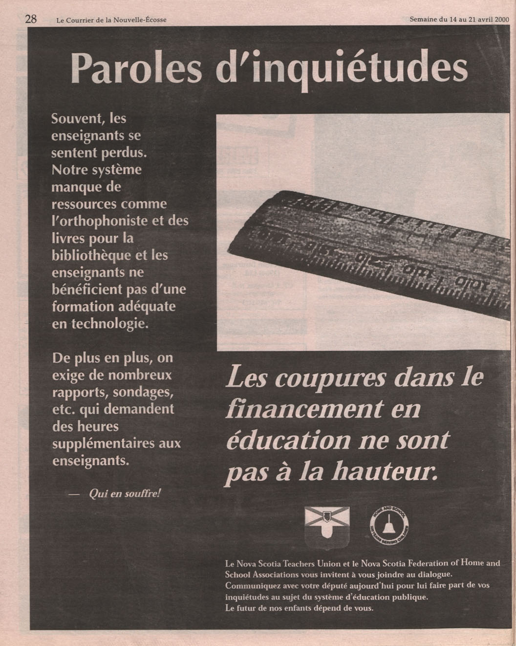 Le Courrier is Nova Scotia's leading French-language newspaper, and the only one with province-wide coverage and distribution. First published by Désiré d'Éon as Le Petit Courrier (Du Sud-Ouest de la Nouvelle-Écosse) on 10 February 1937, it has appeared weekly ever since, informing its readers, defending the interests of Acadians and francophones, and providing a bridge linking all Acadian regions in the province. It offers community news and events, extended articles, advertisements, announcements, photographs and special supplements, all directed towards supporting Nova Scotia's large, dispersed and diversified Acadian population, its businesses, industries, economy, daily activities, schools and higher education, politics, cultural life and heritage. Le Courrier offers an outstanding and unparalleled perspective on 66 years' accumulated history of Nova Scotia's Acadian population, thus enabling exploration of interests, activities, accomplishments, concerns and community issues across a broad swath of the 20th century.