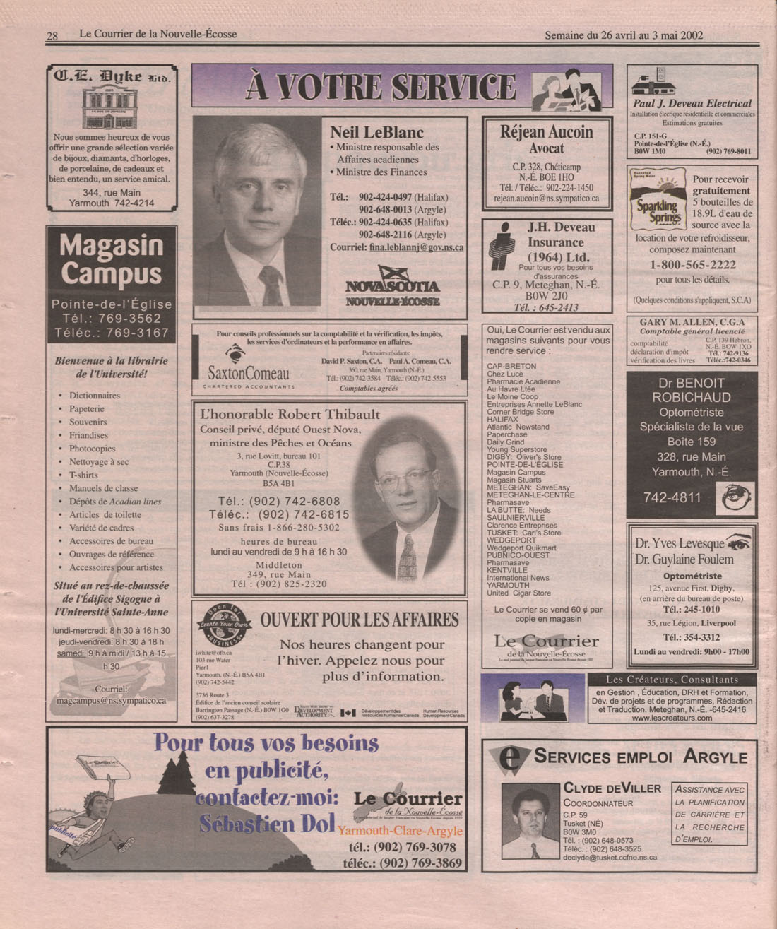Le Courrier is Nova Scotia's leading French-language newspaper, and the only one with province-wide coverage and distribution. First published by Désiré d'Éon as Le Petit Courrier (Du Sud-Ouest de la Nouvelle-Écosse) on 10 February 1937, it has appeared weekly ever since, informing its readers, defending the interests of Acadians and francophones, and providing a bridge linking all Acadian regions in the province. It offers community news and events, extended articles, advertisements, announcements, photographs and special supplements, all directed towards supporting Nova Scotia's large, dispersed and diversified Acadian population, its businesses, industries, economy, daily activities, schools and higher education, politics, cultural life and heritage. Le Courrier offers an outstanding and unparalleled perspective on 66 years' accumulated history of Nova Scotia's Acadian population, thus enabling exploration of interests, activities, accomplishments, concerns and community issues across a broad swath of the 20th century.