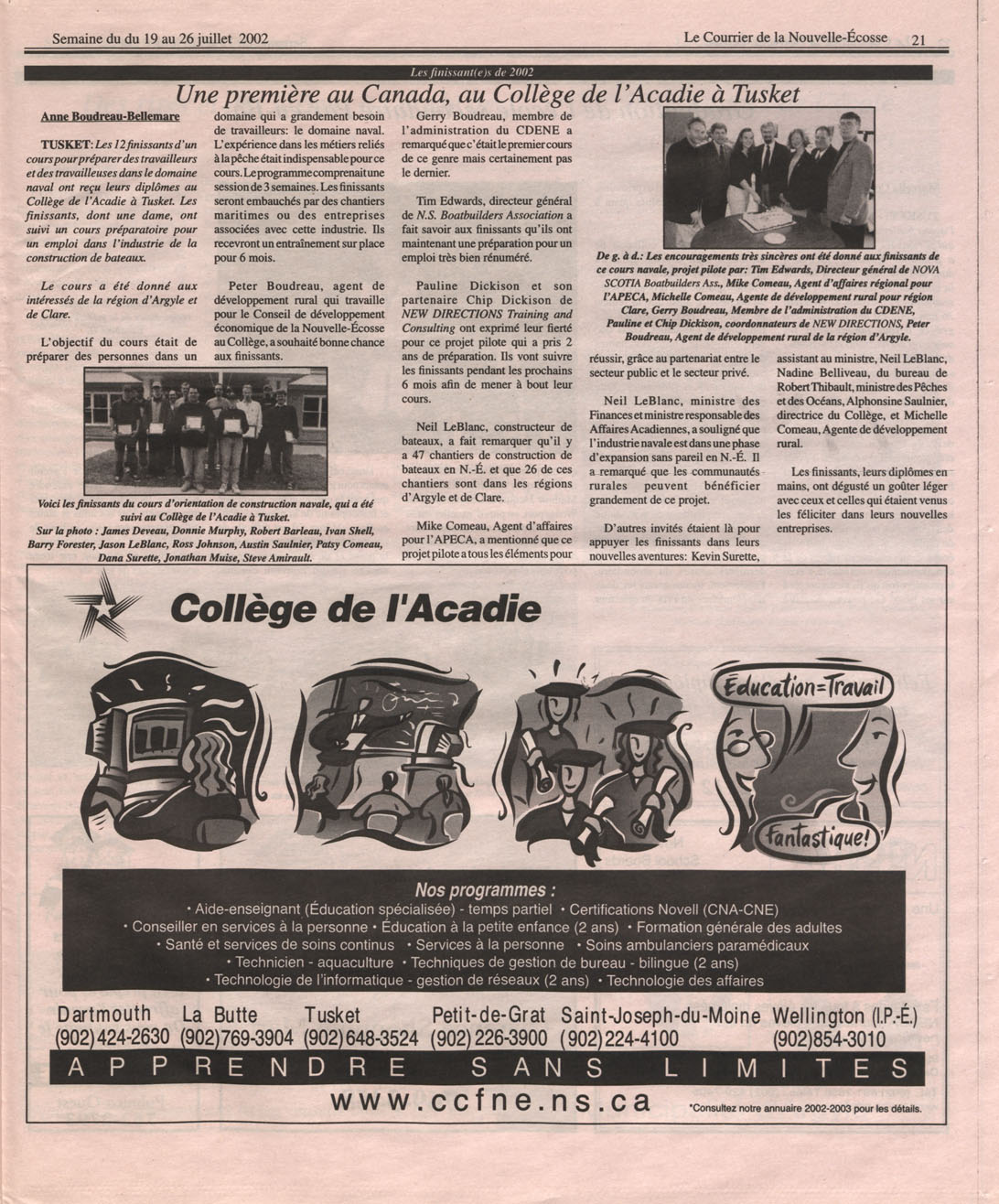 Le Courrier is Nova Scotia's leading French-language newspaper, and the only one with province-wide coverage and distribution. First published by Désiré d'Éon as Le Petit Courrier (Du Sud-Ouest de la Nouvelle-Écosse) on 10 February 1937, it has appeared weekly ever since, informing its readers, defending the interests of Acadians and francophones, and providing a bridge linking all Acadian regions in the province. It offers community news and events, extended articles, advertisements, announcements, photographs and special supplements, all directed towards supporting Nova Scotia's large, dispersed and diversified Acadian population, its businesses, industries, economy, daily activities, schools and higher education, politics, cultural life and heritage. Le Courrier offers an outstanding and unparalleled perspective on 66 years' accumulated history of Nova Scotia's Acadian population, thus enabling exploration of interests, activities, accomplishments, concerns and community issues across a broad swath of the 20th century.