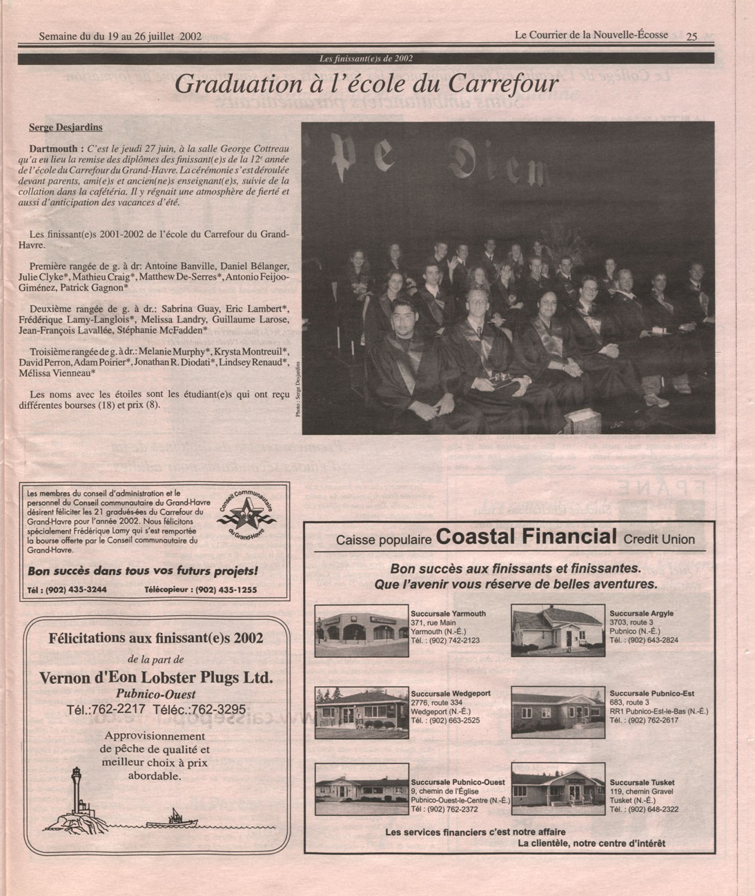 Le Courrier is Nova Scotia's leading French-language newspaper, and the only one with province-wide coverage and distribution. First published by Désiré d'Éon as Le Petit Courrier (Du Sud-Ouest de la Nouvelle-Écosse) on 10 February 1937, it has appeared weekly ever since, informing its readers, defending the interests of Acadians and francophones, and providing a bridge linking all Acadian regions in the province. It offers community news and events, extended articles, advertisements, announcements, photographs and special supplements, all directed towards supporting Nova Scotia's large, dispersed and diversified Acadian population, its businesses, industries, economy, daily activities, schools and higher education, politics, cultural life and heritage. Le Courrier offers an outstanding and unparalleled perspective on 66 years' accumulated history of Nova Scotia's Acadian population, thus enabling exploration of interests, activities, accomplishments, concerns and community issues across a broad swath of the 20th century.