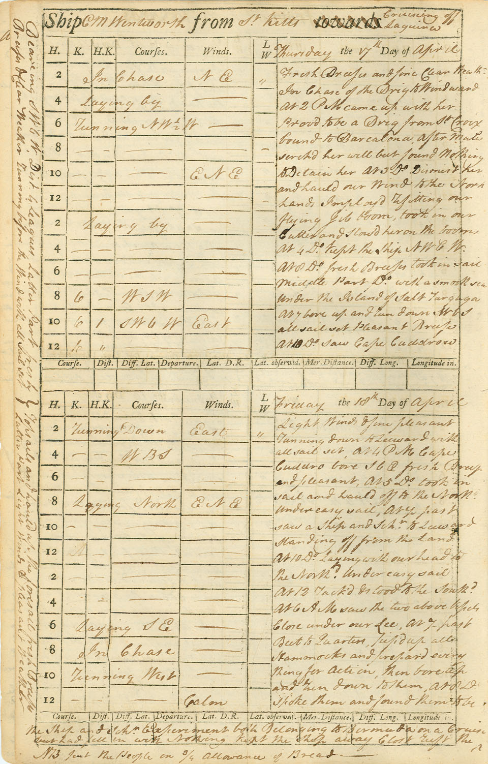 Her first three cruises into the Caribbean against the French and Spanish proved highly successful. Enough lucrative prizes were taken to give both owners and crew members a sizeable income. Prompted by this record of success, the Wentworth (named after the son of Nova Scotia's Lt. Governor, Sir John Wentworth) returned to sea again in November 1799, under the command of Captain Thomas Parker, a resident of Liverpool. On board were a crew mostly recruited from Nova Scotia's "south shore." Included in that contingent were six to eight black sailors, most likely people who had come to Nova Scotia during the Loyalist exodus from the new United States, some fifteen years earlier.