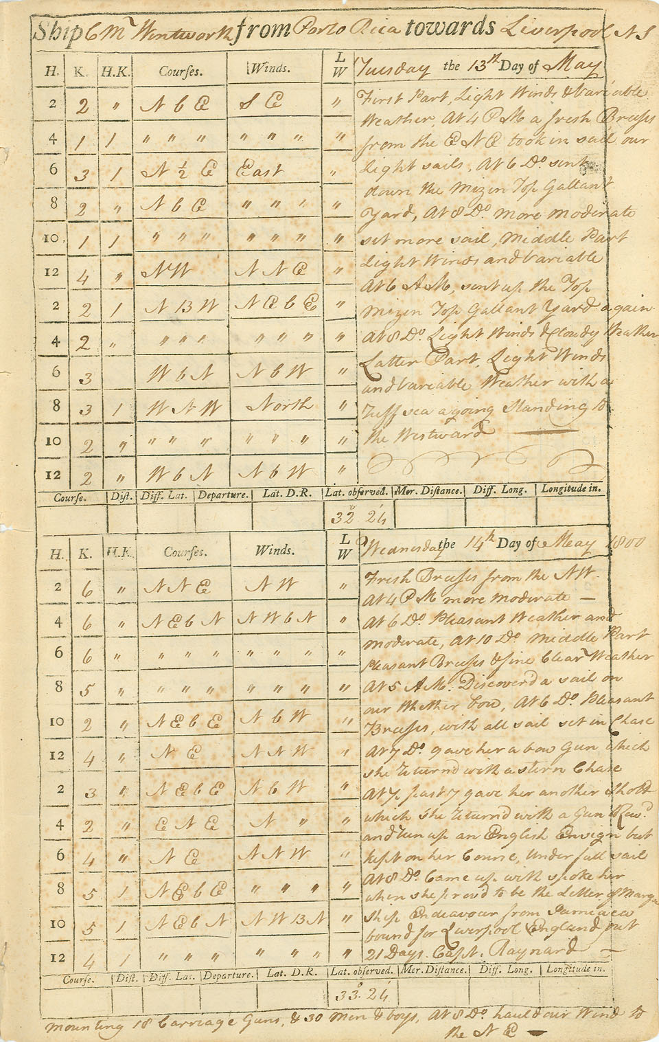 Built at Liverpool in 1798 by a consortium of Liverpool, NS investors, the 130 ton, full-rigged ship (three masts, all carrying square rigging) Charles Mary Wentworth began her career as a privateer in August 1798. Carrying 16 cannon and a crew numbering over eighty, this was one of the largest and most formidable privateers to sail from Nova Scotia.