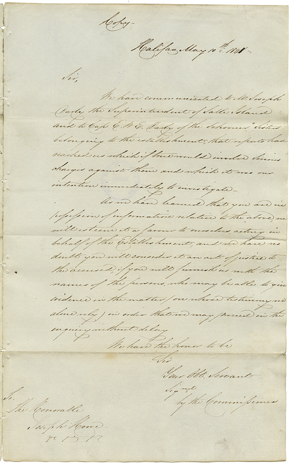 Letter to the Commissioner's for the affairs of Sable Island regarding