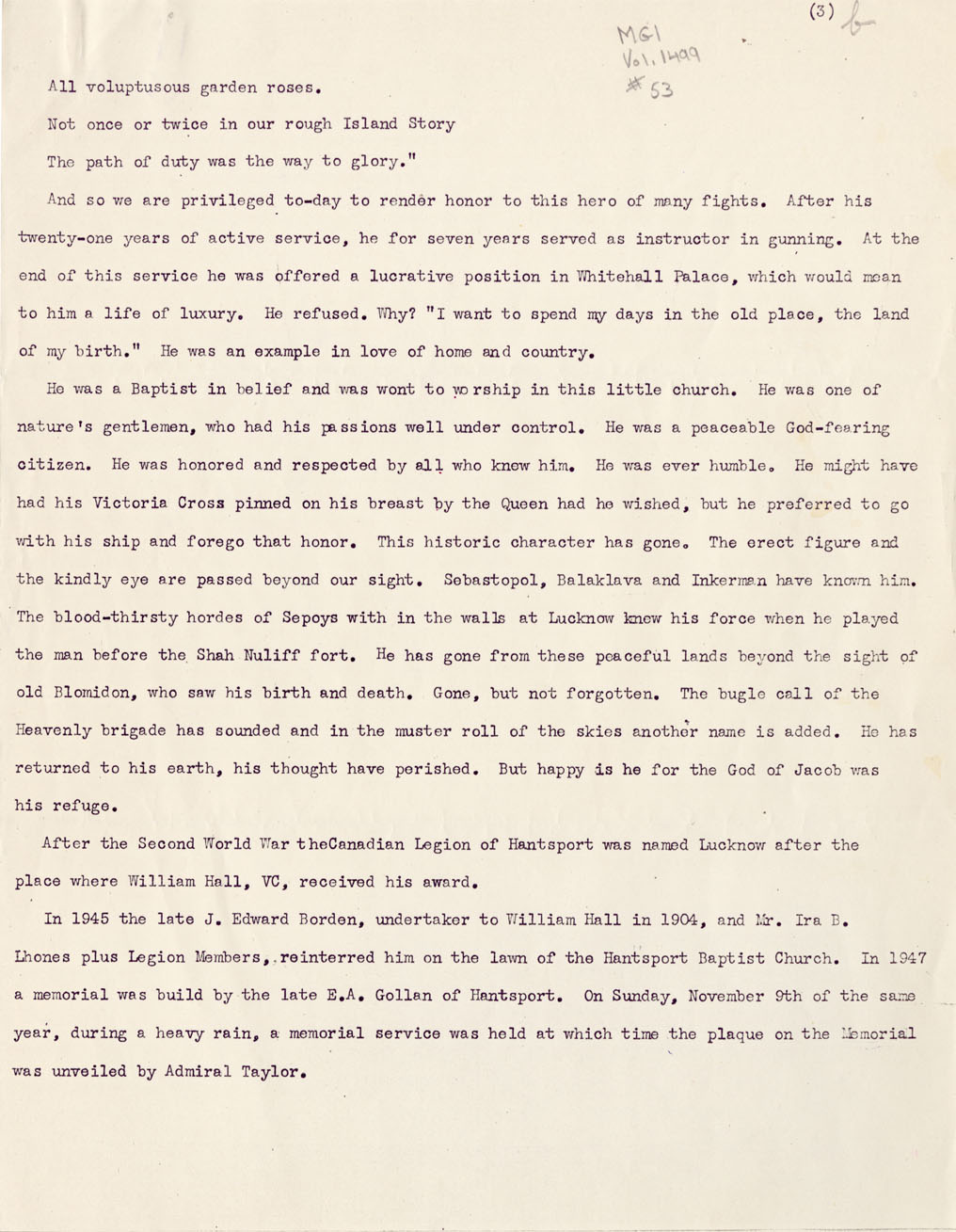 Reference William Hall, VC Nova Scotia Archives MG 1 volume 1499 number 53